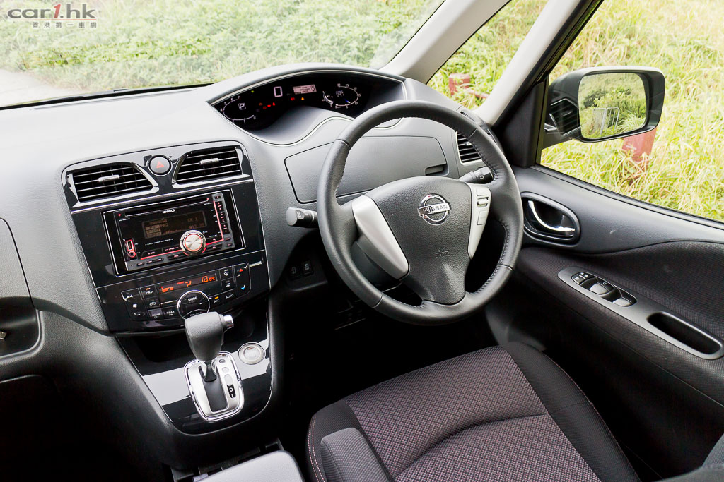 Nissan Serena 的駕駛艙相信是筆者近期試那麼多車中最多擺放空間的一架,為了開車時雙腳活動比較舒服,筆者都會將銀包、電話放到車內的儲物地方。中控台下方剛好設有一個隠藏式平台,正好滿足到放手機的需要。而銀包就可以放在左邊的手枕箱或者軚盤後方的儲物格。車匙方面,駕駛席的右下方就設有小方格空間,足夠放入 Keyless Go 車匙。對於一向整齊的筆者來說,有充足的儲物空間是很重要,相信設計 Serena 的設計師也是一個注重整齊的人吧。Serena 車窗比一般私家車、MPV 七人車都要大,車身兩側的窗口大概由乘座姿勢的心口開始,A 柱位置設有大型三角小窗,令到睇位的地方再多一點,同時令到駕駛艙感覺開揚。由於車窗很大,所以任何情況下 Serena 的車廂都不會令人覺得陰暗。若真的覺得陽光太強時,中排車窗有窗簾設備,可以遮擋一點陽光。
