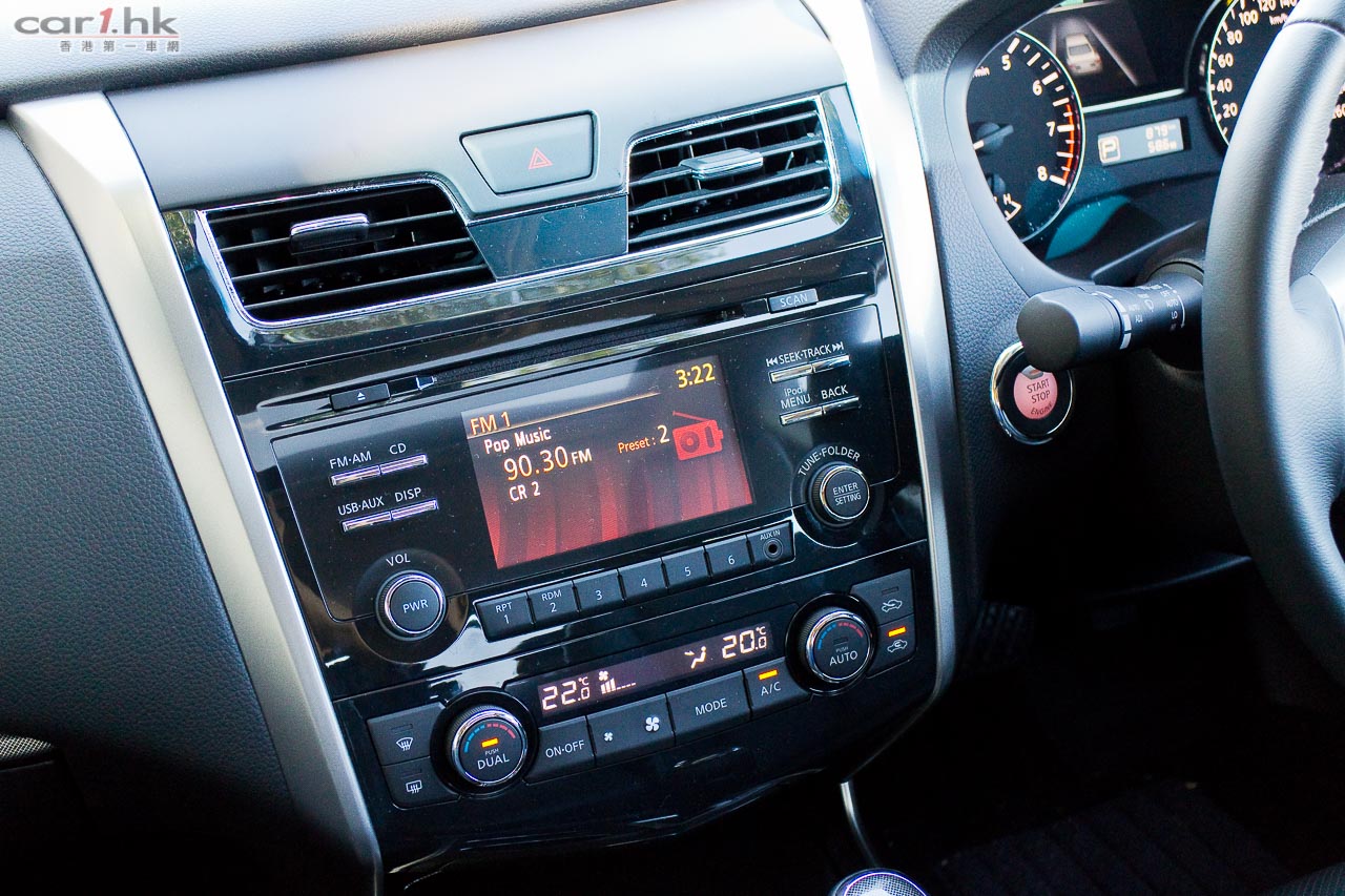 今代 Nissan TEANA,香港代理如無意外只會提供 2.5XV 版本。這個版本跟上代不同,由 V6 引擎改用以慳油為先的直四 2.5 公升 Twin VTX 引擎,配合 Nissan 自家的 XTRONIC CTV 無段變速波箱,雖然馬力比上代小了 9 匹,總馬力為 173 匹,但扭力就比上代提升了,達到 234 牛頓米扭力,令到它的起步感覺不遜給上代。加上波牙比再度優化,配合 ECO 慳油模式駕駛時可達到 7.5L 走 100km 的成績,比上代慳油 26%,二氧化碳排放同樣低 26%,達 180g/km。在實際試駕時,起步聲浪是比 V6 多了一點的,不過由於隔音出眾,是接受範圍之內。走順了之後,整體動力都是動力充裕的。而駕駛感、軚感都是很實在,一貫日產車風格。今次 2.5XV 使用的 XTRONIC CTV 無段變速波箱多了一個 Ds 模式,它可以提供傳統 AT 波箱轉檔時的感覺,提升駕駛者玩樂性。試駕了一段山路後,發配它的避震機吸震力不錯,加上全新設計的懸掛系統有助提升行車時的車身動態,開起來比上代 Sporty 很多。2.5XV 亦有 Active Trace Control 系統,令轉向準備性都有所提升,亦可以自動調節內輪的制動,轉彎角度更靚。