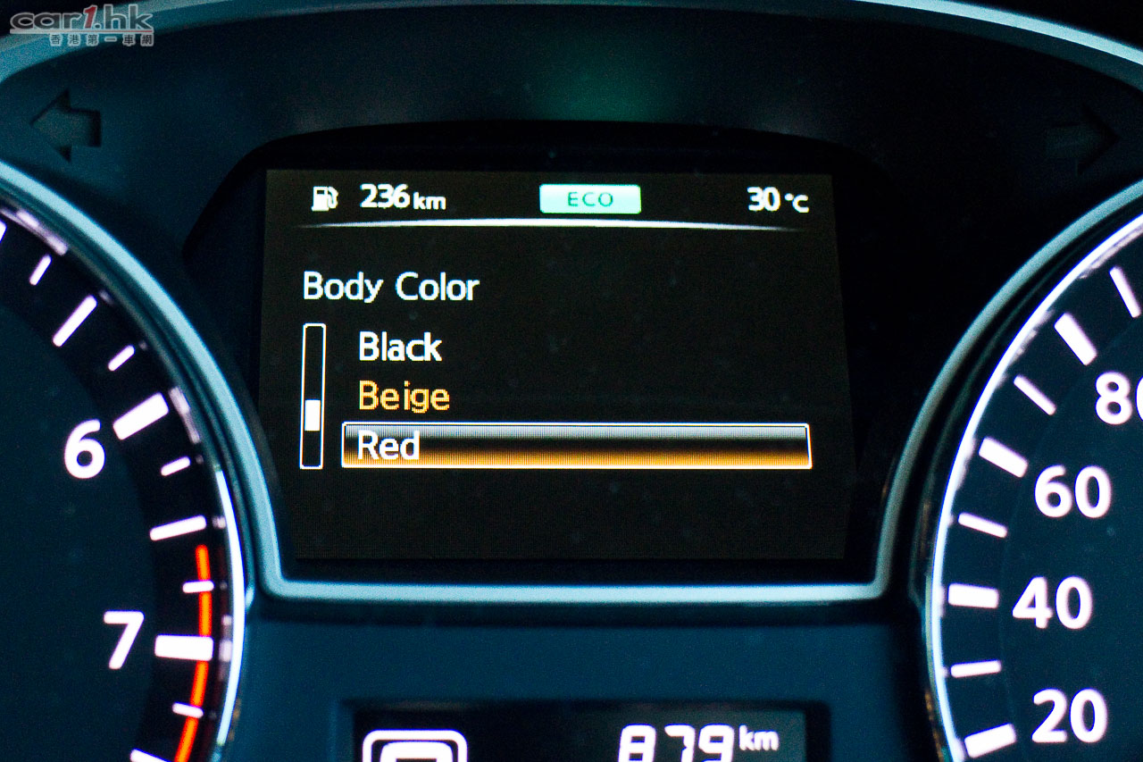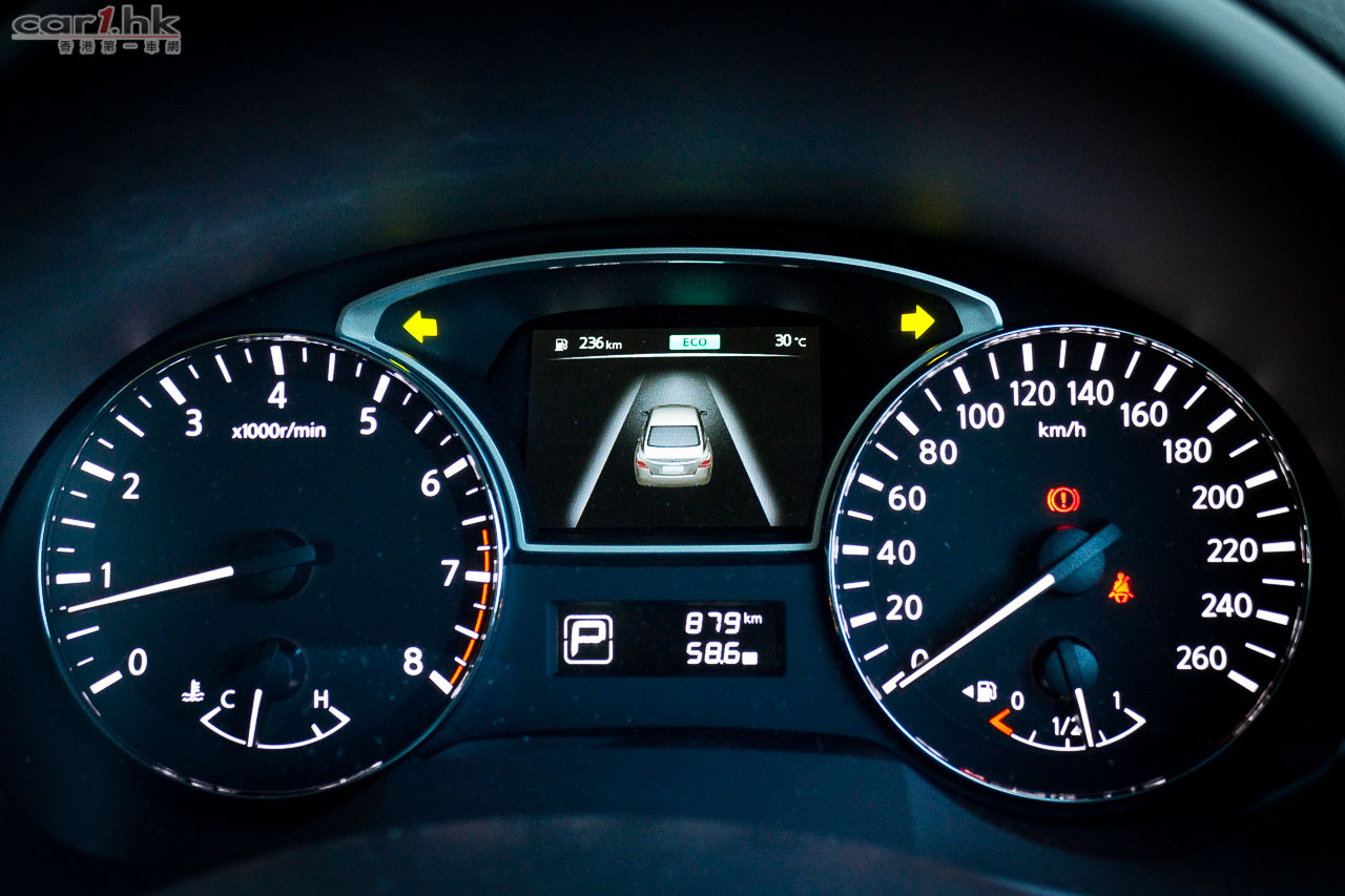 TEANA 2.5XV 外觀轉變了不少,車頭鬼面罩和車燈都有向後伸延的設計,令到係個車頭跑感得以提升。車頭燈還有自動清洗系統,都是高級車才有的設備。輛圈使用適中的 17 吋輪圈,車身的腰線以流水式由車頭伸展到車尾,令到這部車的線條添加了動感。車尾設計加闊了,兩邊雙出尾喉和 LED 尾燈都是今次改款部份,給車主一個新鮮感,亦擺脫了豪華房車感覺總是老派設計的概念。今次 TEANA 車身尺馬變大了,車長多 25mm、闊度多了 35mm、高度多了 15mm,車身大了有什麼好處?當然提升它的氣派和架子吧。在輪距方面亦有 35mm 增長,體重減了 60kg,換來的是更好操控,的而且確今代是有不錯的駕駛感。今次試駕的是黑色配金屬感車廂,筆者對它的感覺一般,覺得米色配桃木內飾更有氣派,更配這部車。車廂內的 Bose 九喇叭音響是標準配置,有齊 USB、藍牙聽歌功能。設有後泊車鏡頭和感應器,車距感應器指示會在錶板上顯示。舒適性方面,一貫 TEANA 感覺,寬敞舒適,後座腳部空間亦很足夠。在世界性汽車引擎針對慳油後,豪華房車也要面臨這個轉變,而改用直四引擎的 TEANA 亦不負所望,同時保持出眾的質素,就算連日本本土版 TEANA 都是在泰國製造後,已經沒有人質疑日產在品質檢查的可靠度,變相令都是泰國造的 Nissan March 入門小車的車主或準車主帶來更大信心。
