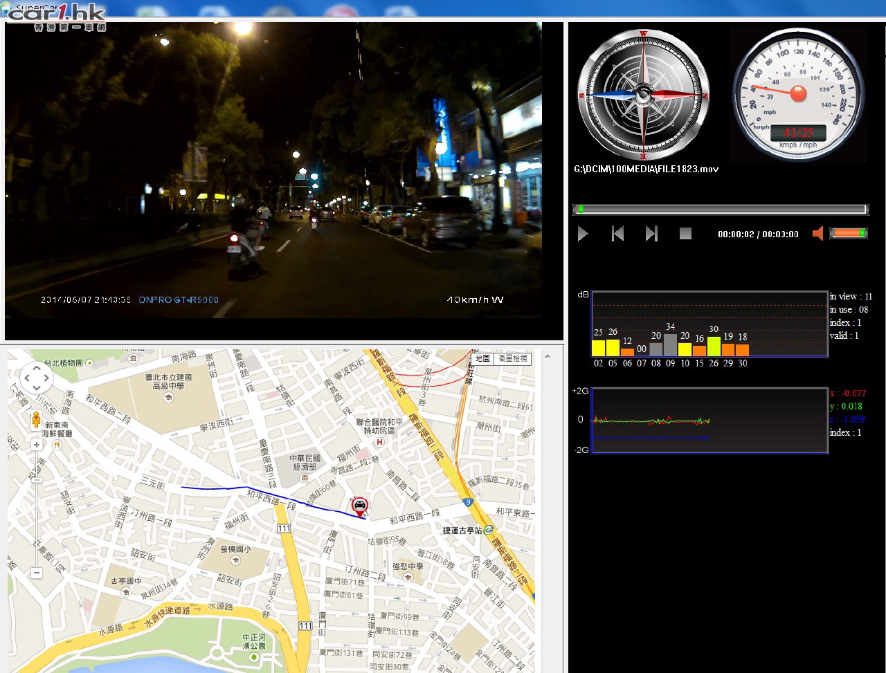 ONPRO GT-R5800具有的車道偏移和疲勞駕駛提醒,更有GPS測速照相提醒及行車軌跡記錄功能,隨機附贈的SuperCar行車紀錄影像管理軟體,可以對應Google Map追溯行車軌跡, 影像, 時速等資訊、SuperCar行車紀錄影像管理軟體的操作介面為駕車人仕駕駛時更為安全。