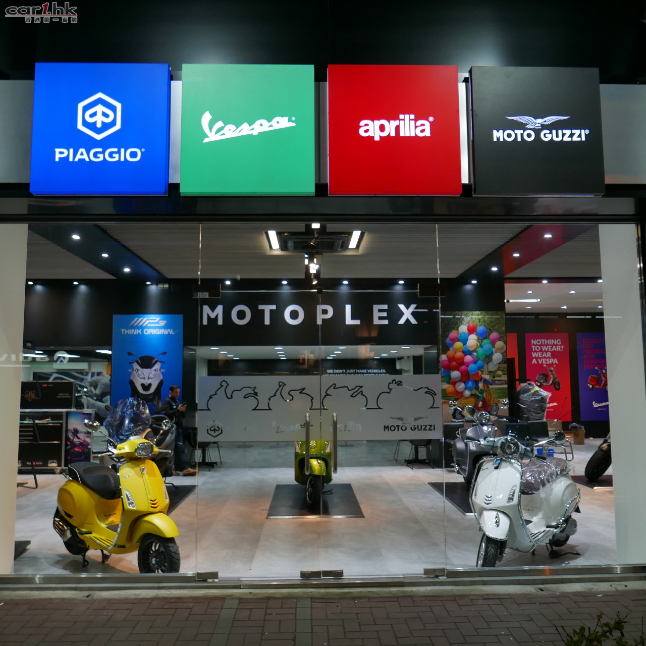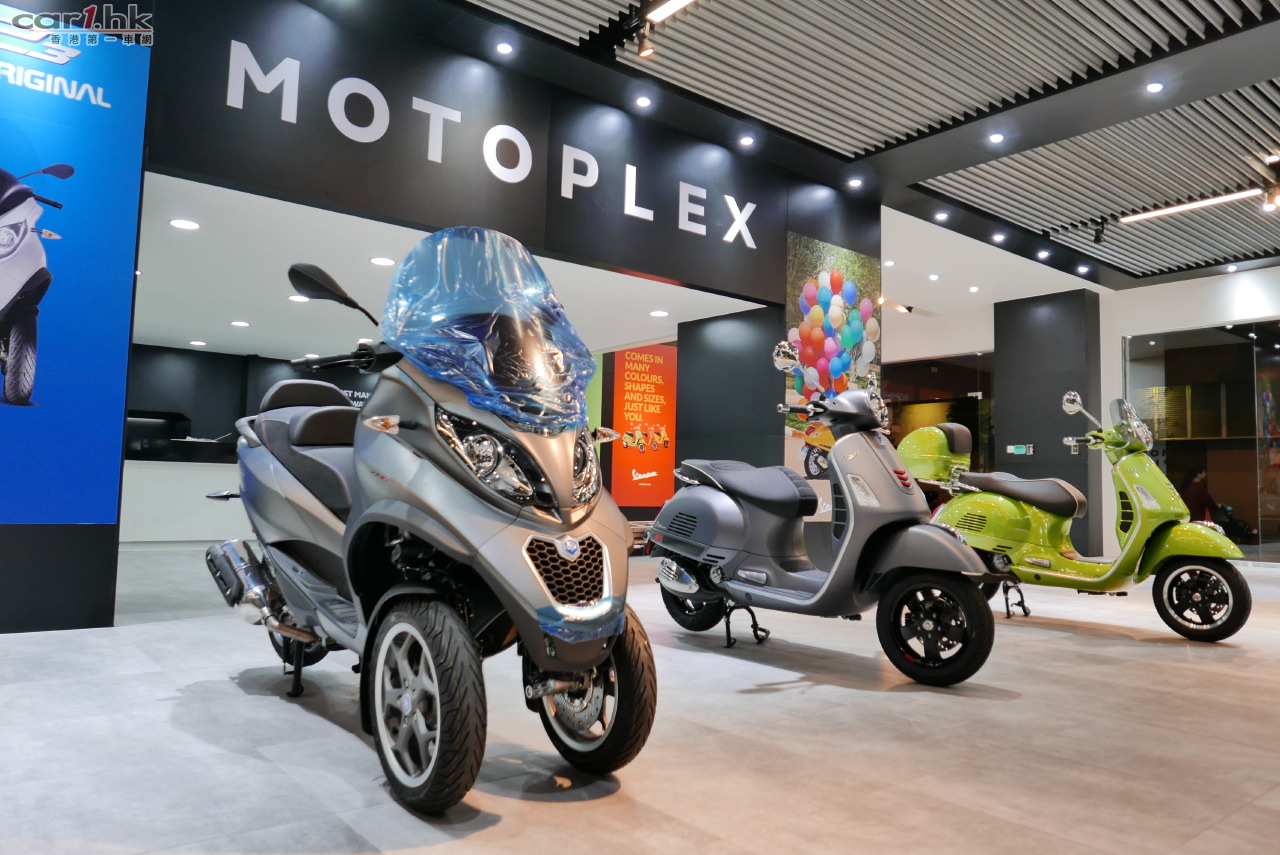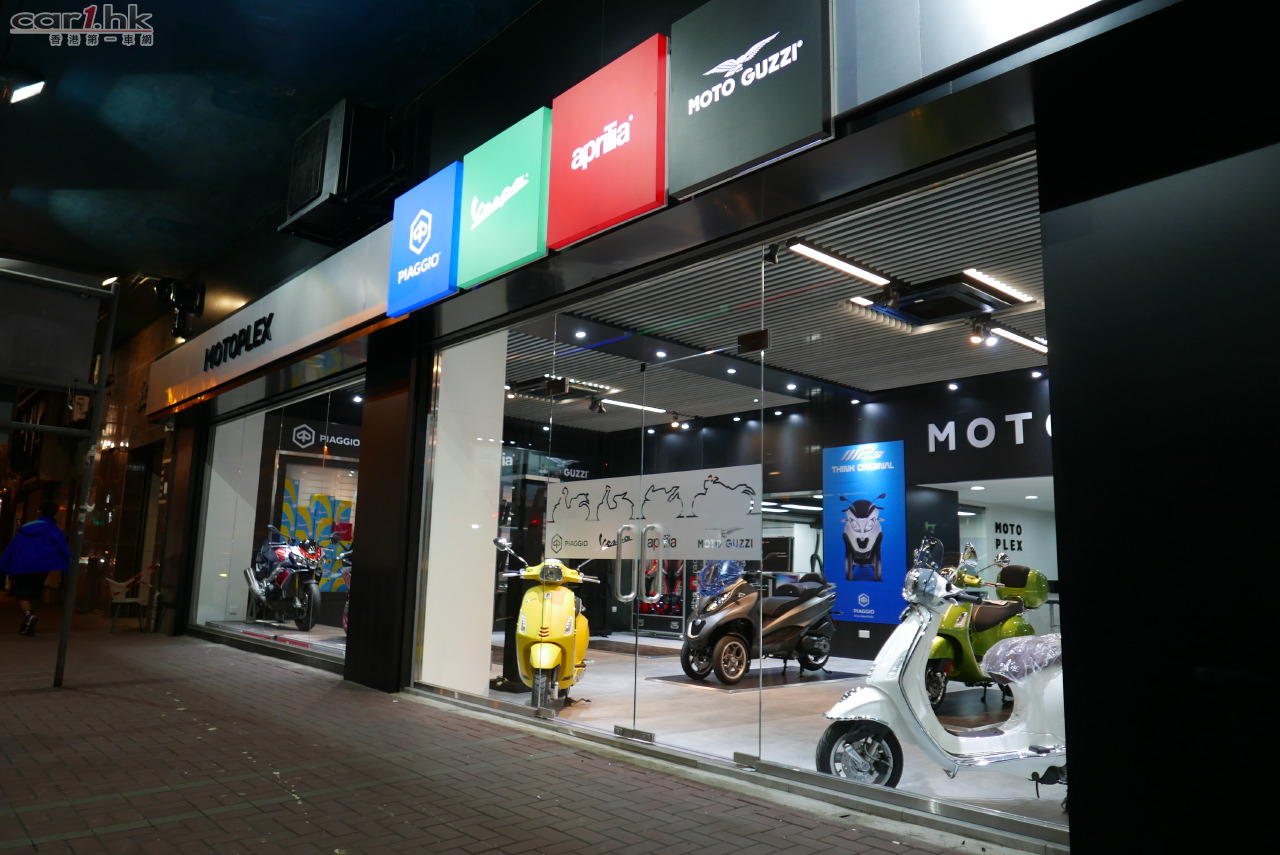 Piaggio集團於香港開設首間概念店MotoPlex Hong Kong-展示集團旗下四大高級品牌-Piaggio、Vespa、Aprilia及Moto Guzzi的多元化產品。MotoPlex以一站式服務體驗為主題概念,故MotoPlex 香港概念店擁有全面而多元化的產品系列及完善的客戶服務中心,成為全港電單車愛好者必到之地。甫進入MotoPlex香港概念店,顧客仿如置身於意大利米蘭總部的MotoPlex概念店一樣,盡享意大利電單車的最佳體驗。