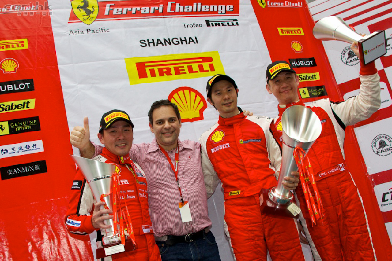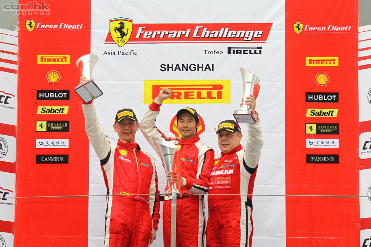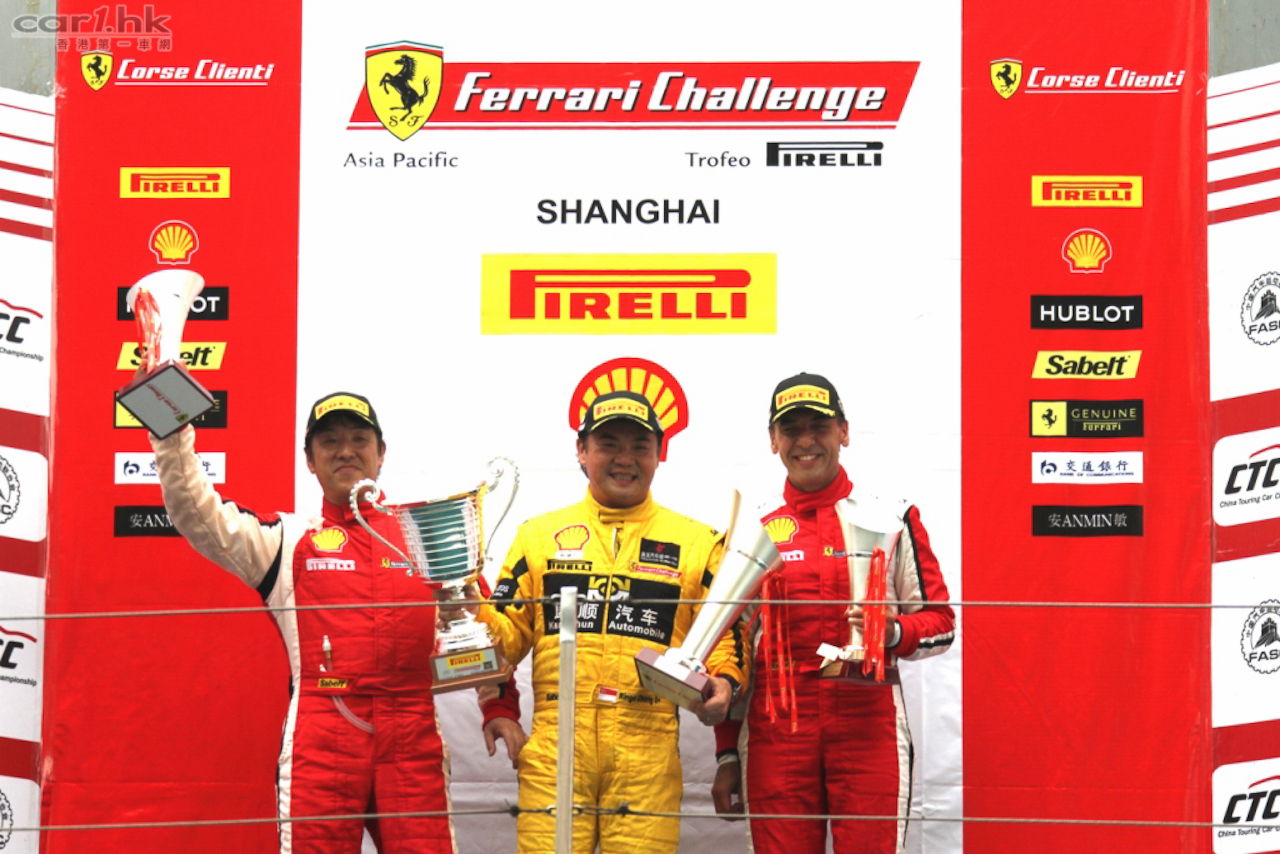 在倍耐力挑戰賽上海站首場正賽中,Pasin LATHOURAS(泰國)率先衝破終點線,代表法拉利中國授權經銷商武漢利駿行參賽的 Ringo CHONG(新加坡)和 Philippe PRETTE(意大利)分列二三位;在第二場正賽中,Ringo CHONG(新加坡)成功超越 Hisamori HAYASHI(日本) 和 Alain LI(法國)登上最高領獎台。殻牌杯挑戰賽首場正賽經過激烈角逐,Alex AU(中國香港)技壓群雄,摘得桂冠,亞軍和季軍獲得者分別是 Eric CHEUNG(加拿大)和 Francis Hideki ONDA(日本);在第二場正賽中,Alex AU(中國香港)再奪桂冠,Gregory TEO(新加坡)和 Eric CHEUNG(加拿大)則分獲亞軍和季軍。