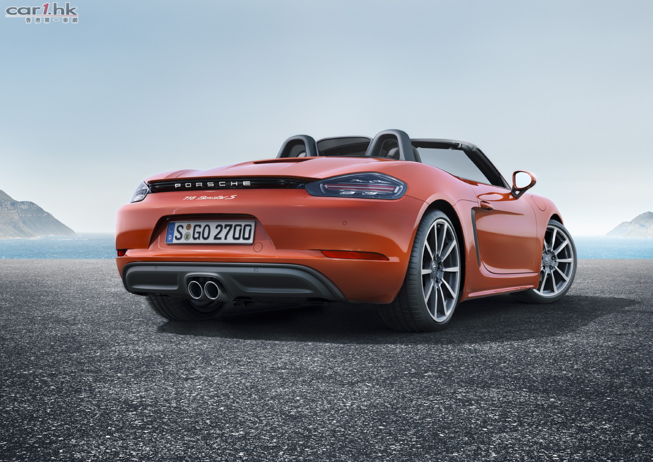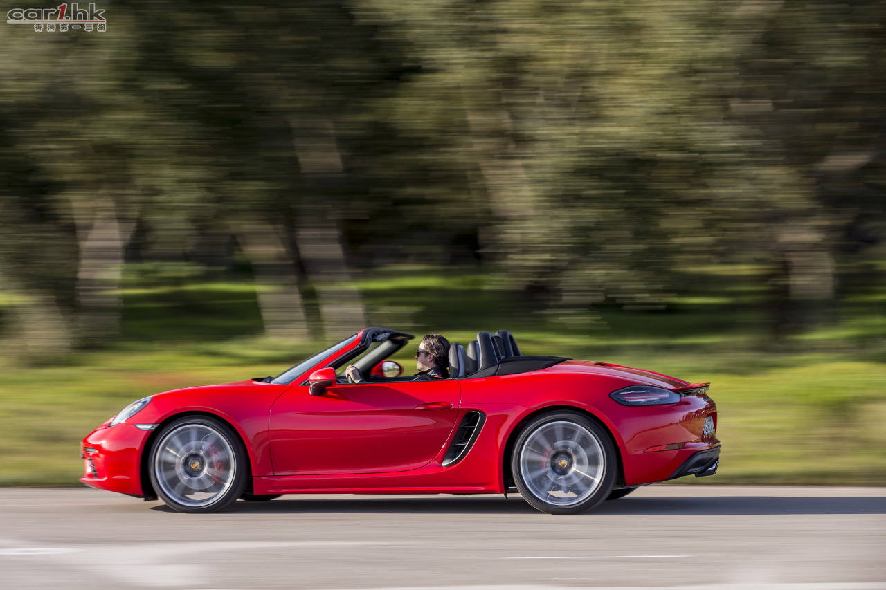 718車系擁有突出的輪廓線條。車頭輪廓更加寬闊更有霸氣。加大的冷卻空氣進口是全新渦輪增壓引擎設計理念帶來的獨有外觀。經過全新設計、帶一體式LED日間行車燈的雙氙氣大燈,配備保時捷動態彎道功能照明系統(PDLS),於香港市場屬標準配置。四點式LED頭燈則屬新增選項。從側面看,新車系的識別特徵包括獨立式尾翼板和側裙。附有兩個導流鰭片的加大進氣口令車身外觀更為動感。718 BoxsterS標配全新的19吋車輪,另有20吋車輪可供選擇。