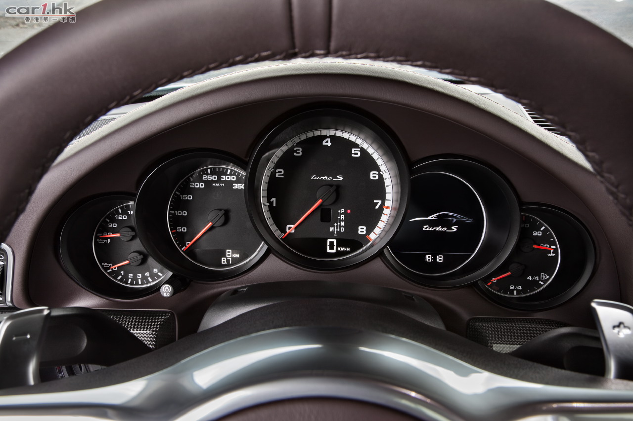 兩款911 Turbo車型的內飾均以911 Carrera車係為基礎經過了重新設計。 S車型的配置堪稱奢華,配備獨特的黑色/Carrera紅色內飾以及帶18向調節和記憶功能的運動型座椅升級版,座椅靠背殼體表麵包覆真皮並飾以雙包縫線和各種碳纖維飾件。與前代車型一樣,BOSE音響系統作為標準配置提供,而品質一流的柏林之聲(Burmester)音響系統亦首次作為選裝配置提供。