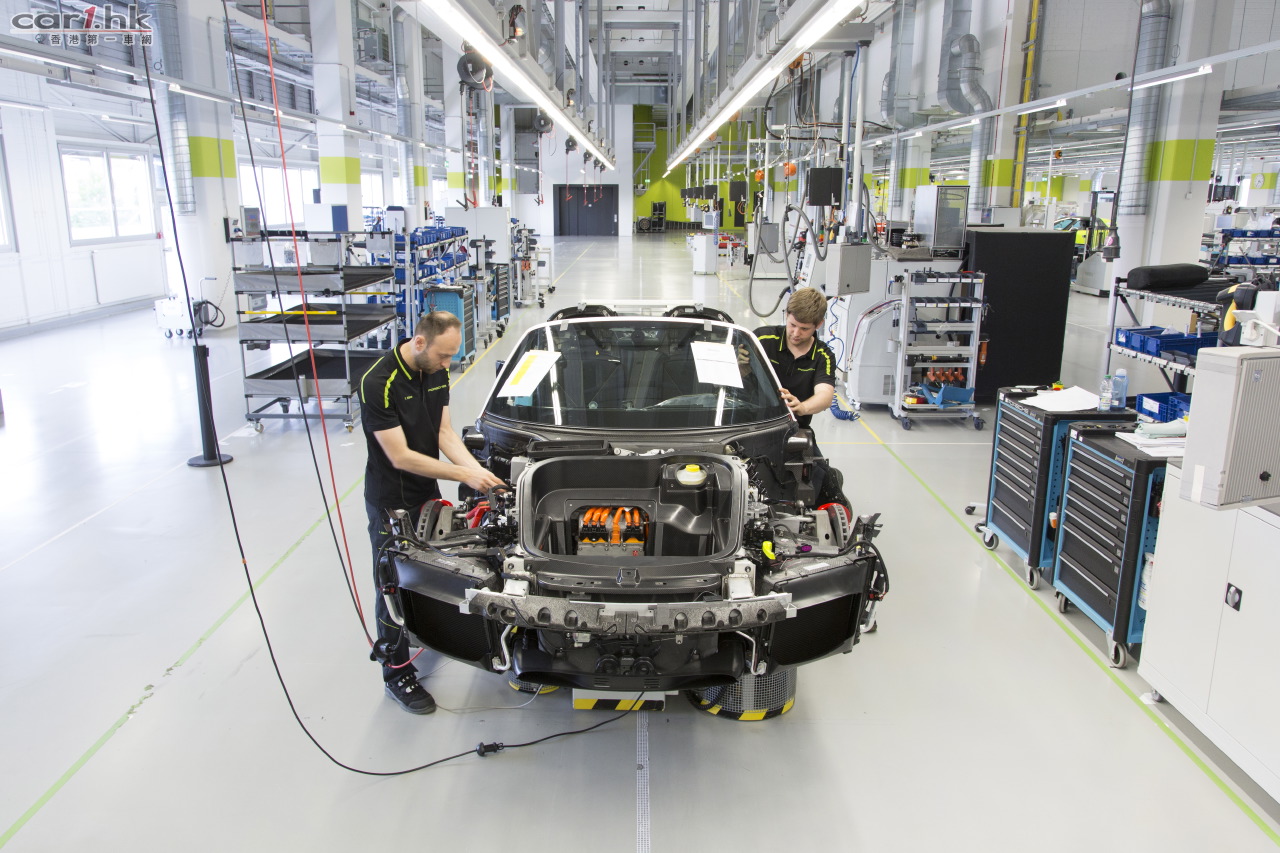保時捷還將創新理念運用於這一混合動力超跑的生產過程之中。保時捷已為車輛裝配及質量保證方面的諸多技術申請專利,確保在人體工學方面符合最為嚴苛的要求。生產過程中的科技含量顯示出保時捷的創新能力已經超越了車輛本身。例如,整個裝配過程完全使用無線工具,包括電池供電藍牙控制螺絲刀。這種先進的螺絲刀通過無線連接,工作時幾乎不發出任​​何噪音。這些特質給予了技師最大限度的靈活性,從而確保所有螺絲連接穩定可靠。此外,該螺絲刀還通過藍牙與數據庫相連,螺絲扭矩值均被記錄。高度可調節的組裝升降車是專為生產雙座單體結構研發的特別解決方案。此外,新型剪刀式升降平台也使得140kg的高壓電池安裝更為簡易。 918 Spyder工廠所使用的皮革塗飾和裝配平台堪稱人體工學和靈活性的行業標杆。這一平台可生產多種零配件,通過可交換式組裝確保高效利用裝配時間。正是這些創新科技,成就了918 Spyder車型的高效生產。