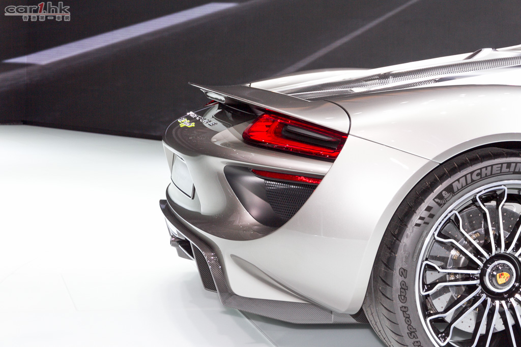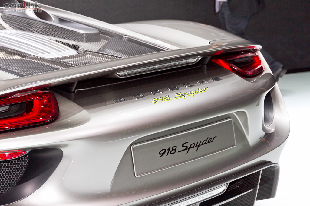 918 Spyder:混合耗油量:3.3–3.0 l/100 km;混合耗電量:12.5–13.0 kWh/100 km;二氧化碳排放量:79–70 g/km