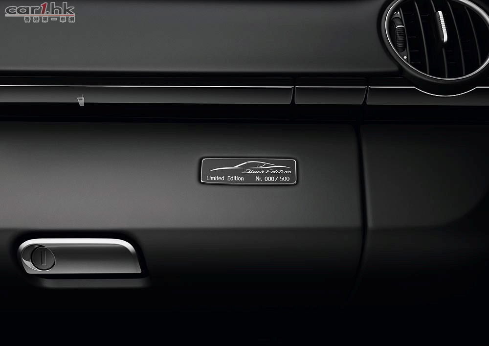 中高階跑車 Porsche Cayman S,可說是911 系列以外的另一個選擇,最近 Porsche 方面限量推出 Black Edition。這部全黑色的 Cayman S,雖沿用普通版本的 3.4L H6 引擎,但是卻提升了 10hp 馬力至 330hp @ 7400rpm,扭力則同樣為 370Nm @ 4,750rpm。加速表現亦同時有進步,採用 6 前速手動排檔下,由 0-100km/h 需時 5.1 秒,較普通版快 0.1 秒左右。如裝上「Sport Chrono 套件」更只需 4.8 秒。Black Edition 極速最高為 279km/h(採用廠方半自動變速系統 PDK 時為 277km/h)。