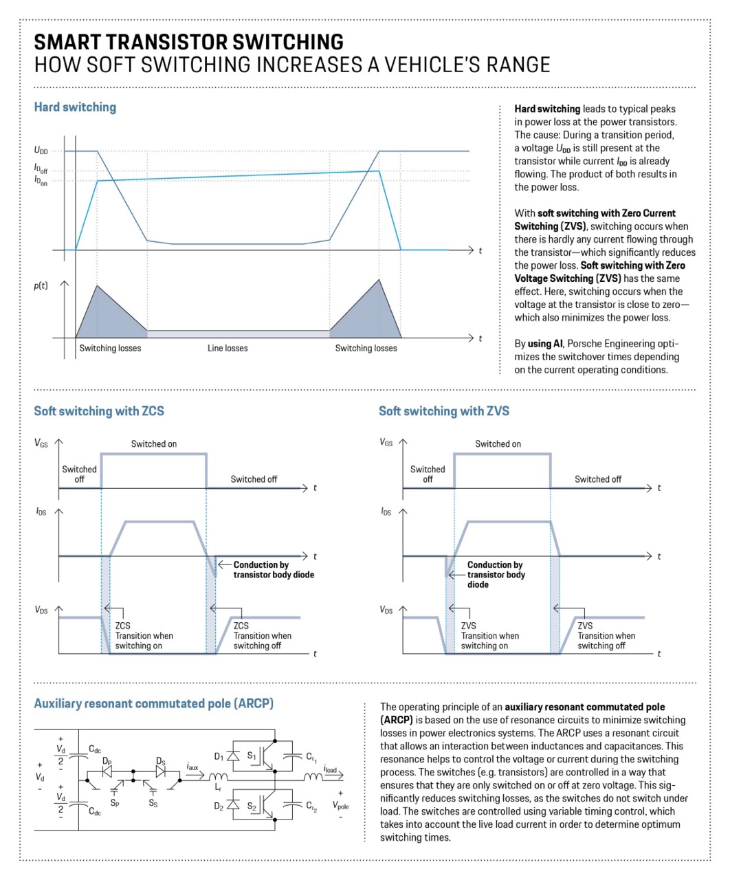 在電動車領域,所有車廠都在為那幾公里的續航力爭得頭破血流,但保時捷(Porsche Engineering)最近發布的一項技術,卻讓這場戰爭提前分出了勝負。這項名為「AI 軟切換」(AI Soft-Switching)的控制中心技術,並非更換了什麼新型電池,而是直接對電動車的「靈魂」逆變器進行了維度打擊。透過預先訓練的 AI 演算法,保時捷成功將功率電晶體的切換損耗降低了高達 95%,這意味著未來電動車的續航力將在不增加電池重量的前提下,獲得接近雙位數百分比的質躍。這不只是一次技術升級,更是一次對能源效率的重新定義。
