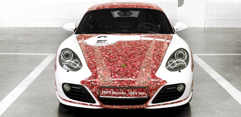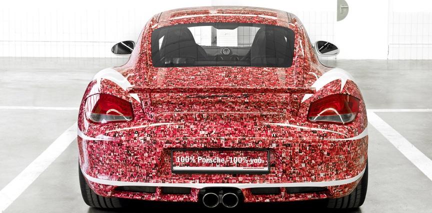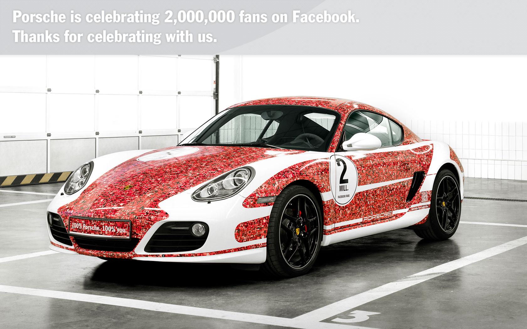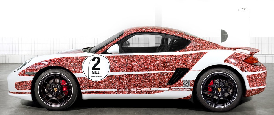 在一年之前,Porsche 為了慶祝她們的 Facebook 專頁已有 1 百萬人 Like,推出了特別版的 911 GT3 R Hybird。時至今日,專頁已經突破 2 百萬 Like,廠方特地推出極具新意的特別版 Cayman S,全車以紅色兩色作為主調,但紅色部分其實是以 200 萬個絲粉頭像所組成,這樣的設計是否吸引,則視乎個人品味了,但卻真的是名副其實的 Fans Car。目前,Porsche 的 Facebook 專頁已經有 237 萬 Like,十分期待突破到 300 萬 Like 時,究竟 Porsche 又會有咩新搞作呢?