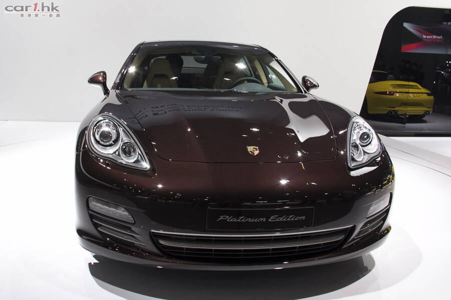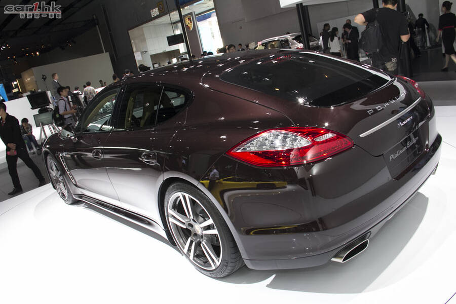 Porsche 於廣州車展首次全球公開展示全新 Panamera Platinum Edition。相比普通版,新車的車頭和車尾均加入了大量了鍍鉻飾條,並標配了 Bi- Xenon 大燈和 19 吋輪圈。車身顏色除了黑、白色外,還可選擇玄武岩黑、炭灰和紅木三種車漆。內櫳方面採用黑色與米色搭配,在踏板和座椅上還有「Platinum Edition」標籤,設備包括有自動加熱座椅、升級版助力轉向系統、保時捷通訊管理系統、7 吋觸摸顯示屏以及 11 喇叭音響。 動力系統方面採用 3.6 升自然進氣 V6 引擎,可輸出最大馬力 300 匹及 400 牛頓米扭力,6.8 秒完成 0 至 100km/h 加速,最高時速可達 261km/h。