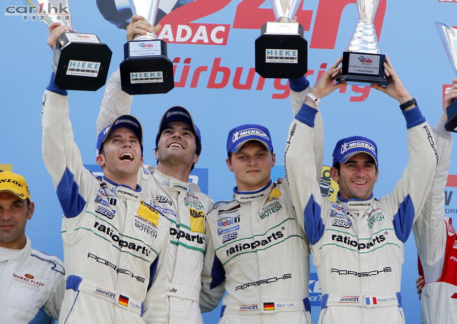 在排位預賽取得第 6 名資格起步的 Manthey 車隊,分別由Marc Lieb(德國)、Timo Bernhard (德國)、Romain Dumas(法國)和 Lucas Luhr (瑞士)共 4 名車手「輪班」,駕駛 Porsche 911 GT3 RSR 在以複雜馳名的紐布靈賽道上飛馳,比賽期間他們不僅要面對來自 BMW M3 GT、Ferrari F 458、Mercedes-Benz SLS 和 Audi R8 LMS 等強勁對手的挑戰,而在入 pit 補充消耗品時亦曾經遇到困難。Lucas Luhr 表示當時 pit 內的油泵突然發生故障,無法正常注入燃料至油缸,車手與工作人員只好徒手推車到另一個油泵面前,才能繼續加油,但這樣已讓車隊耗費多 1 分鐘。不過正如 Timo Bernhard 所言,除了車手技術、戰車性能和後勤專業支援,最重要是全隊不分你我,全心專注在比賽上,才是力克對手和各種困難,最終能夠摘冠的主因。