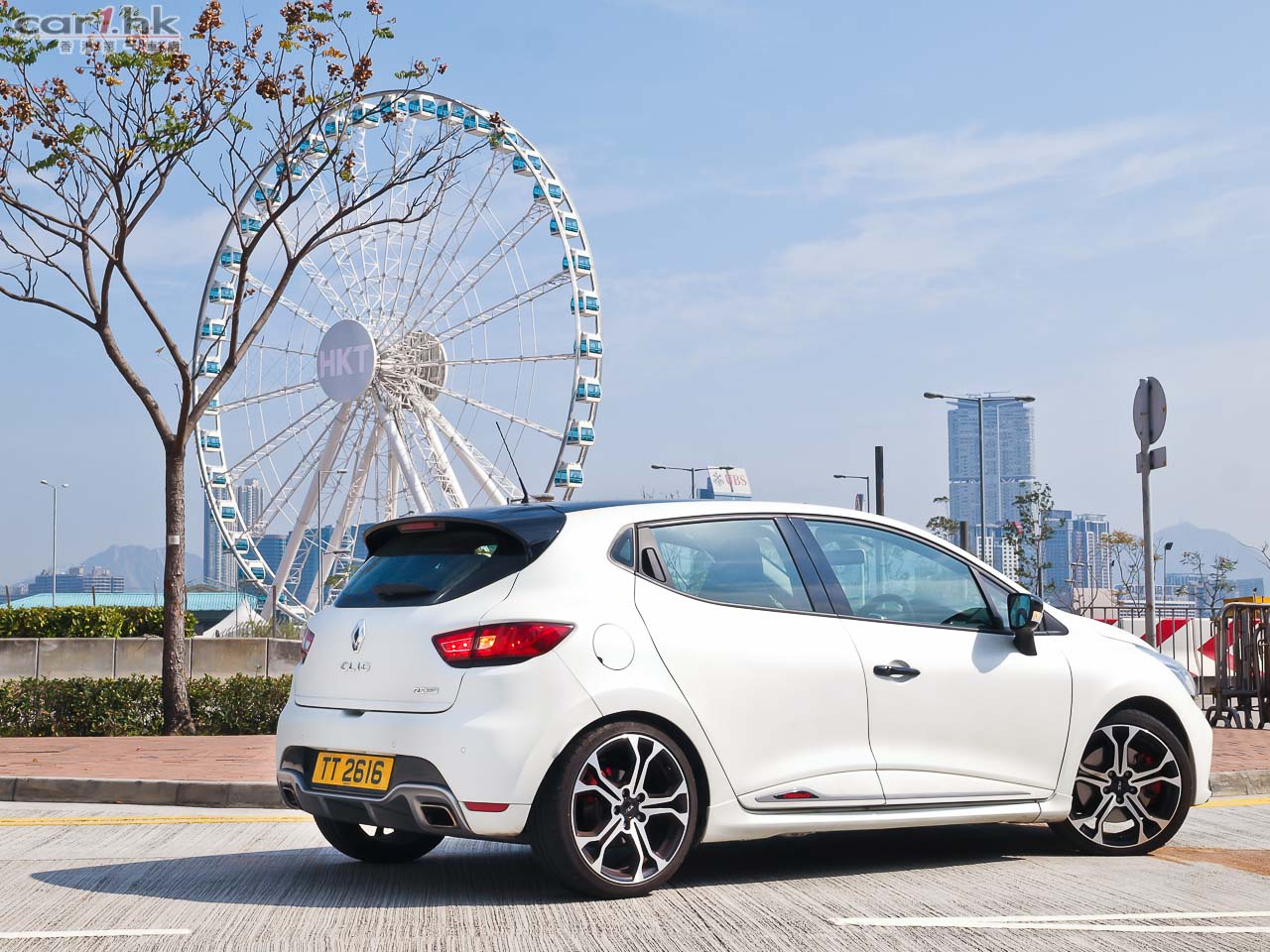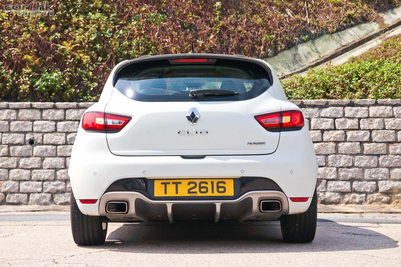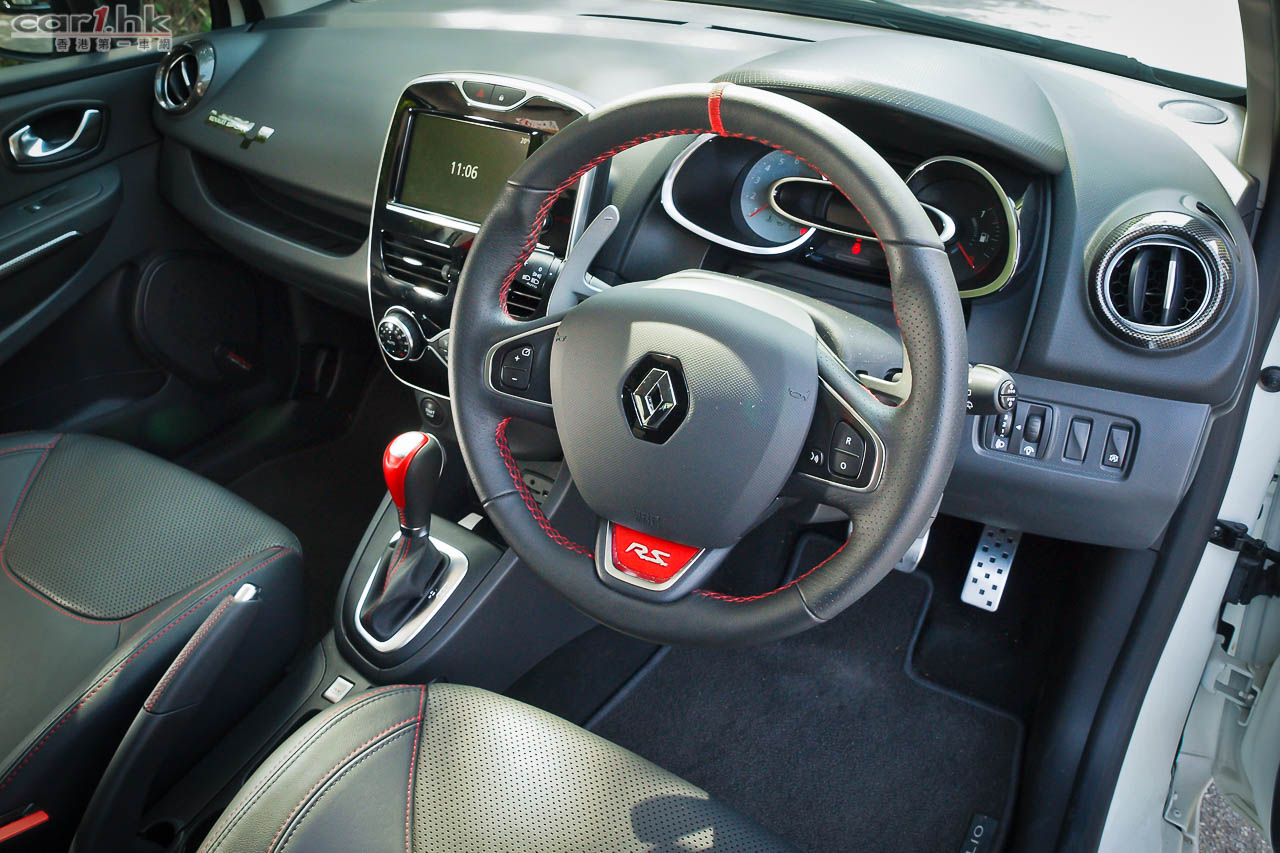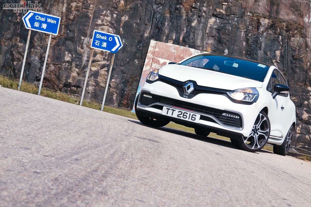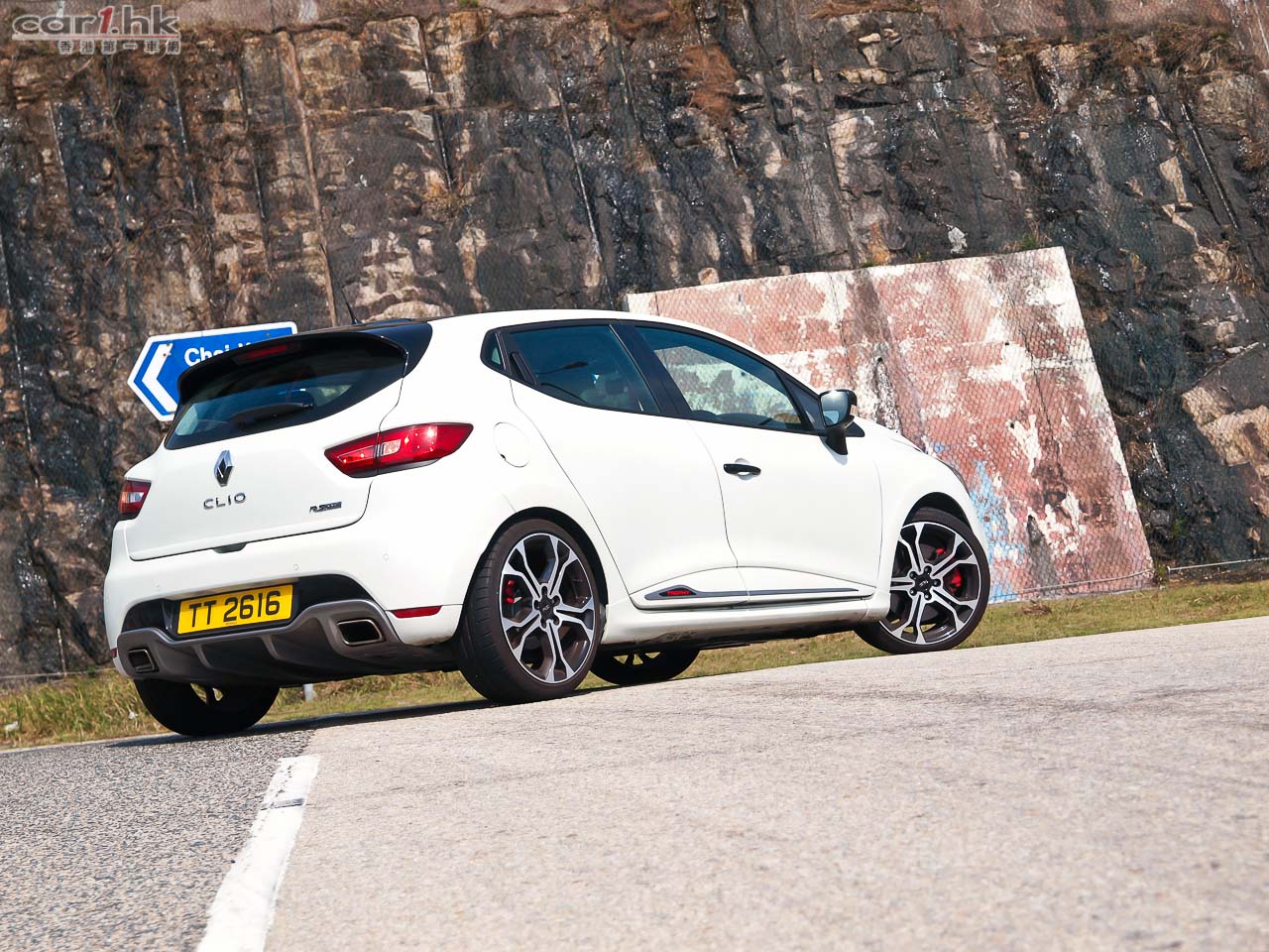 輕巧、嬌小、有力、好彎的Renault Clio R.S.,在熱辣斜尾小跑車市場一向有極大叫座力,車系於2013年推出現有新款,最大的新事,是採用由turbo谷氣的200匹新1.6升引擎,用Renault首個可軚盤轉波的自動雙離合器EDC (efficient dual clutch) 波箱,前軸有R.S. Diff自動落brake扭力導向差速器減understeer,有launch control起步控制電腦程式,0至100km/h 6.7秒;R.S. Drive系統有Normal、Sport和Race三個模式;懸掛採用(比普通Clio)較大形的前吸震器,主吸震杆內有副吸震杆,能更加有效吸收路面起伏和震動,減少懸掛回彈,將負載更平均的覆蓋在輪胎接觸面上;除標準的Sport Chassis懸掛外,升格的Cup Chassis懸掛硬多15%,低3mm離地距,軚盤比率稍快,用紅色前後制動卡鉗,並有較大brake碟。