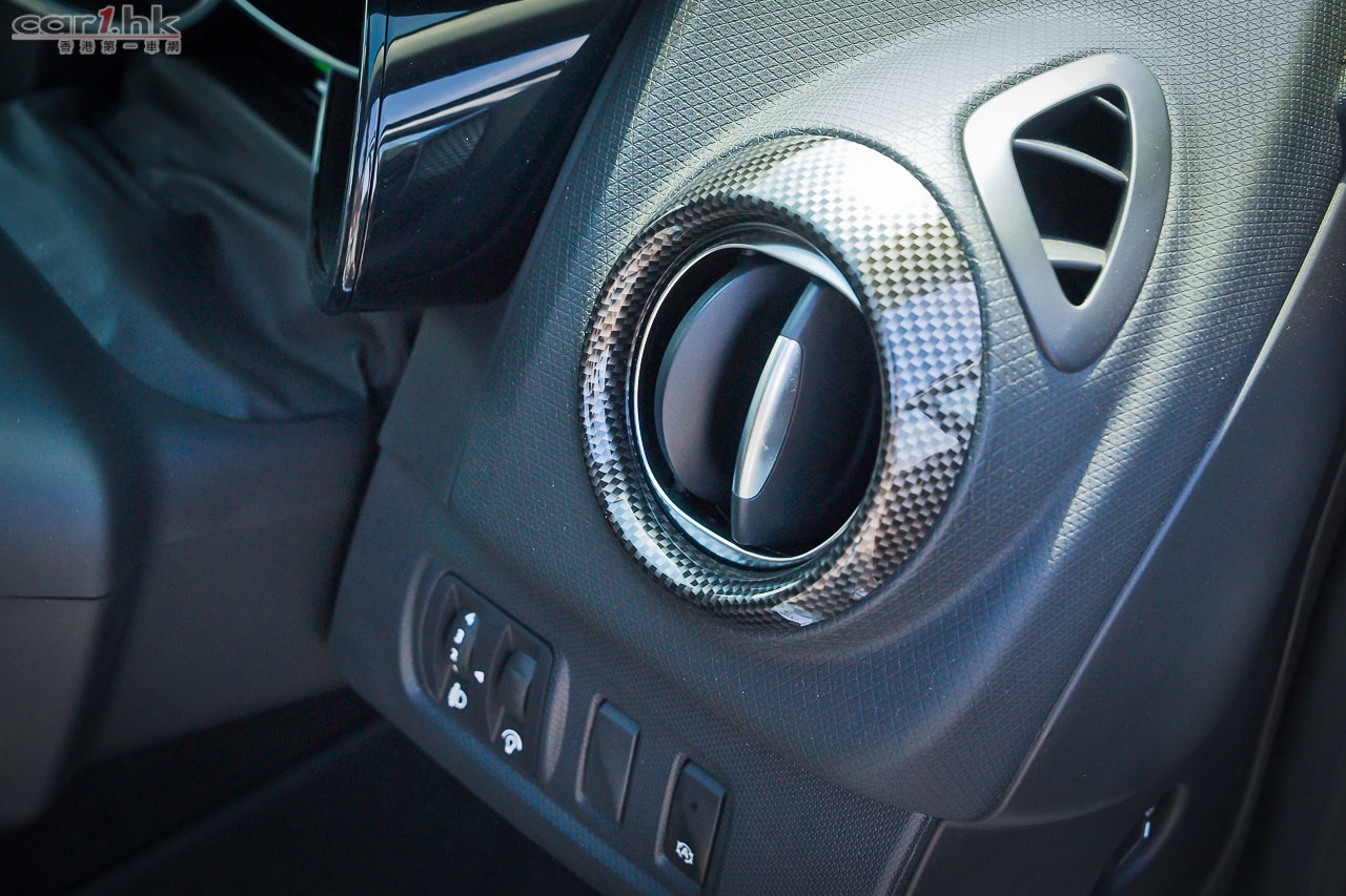 R.S. 200 那橙紅色的門邊、波棍台和冷氣出風口飾塊,R.S. 220 改為啞色電鍍,左右冷氣出風口有假碳纖外框。