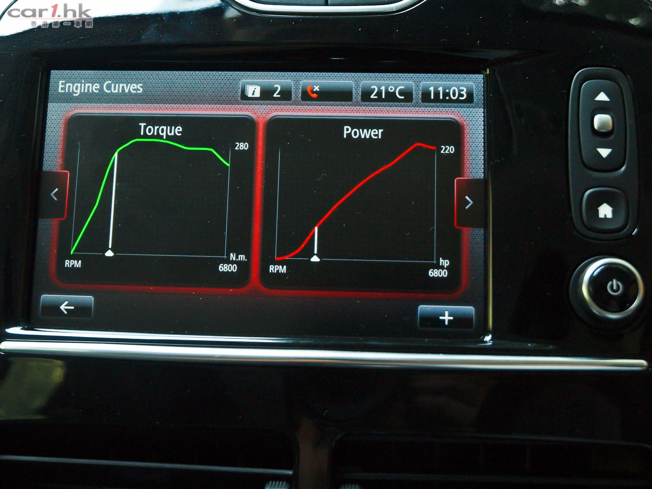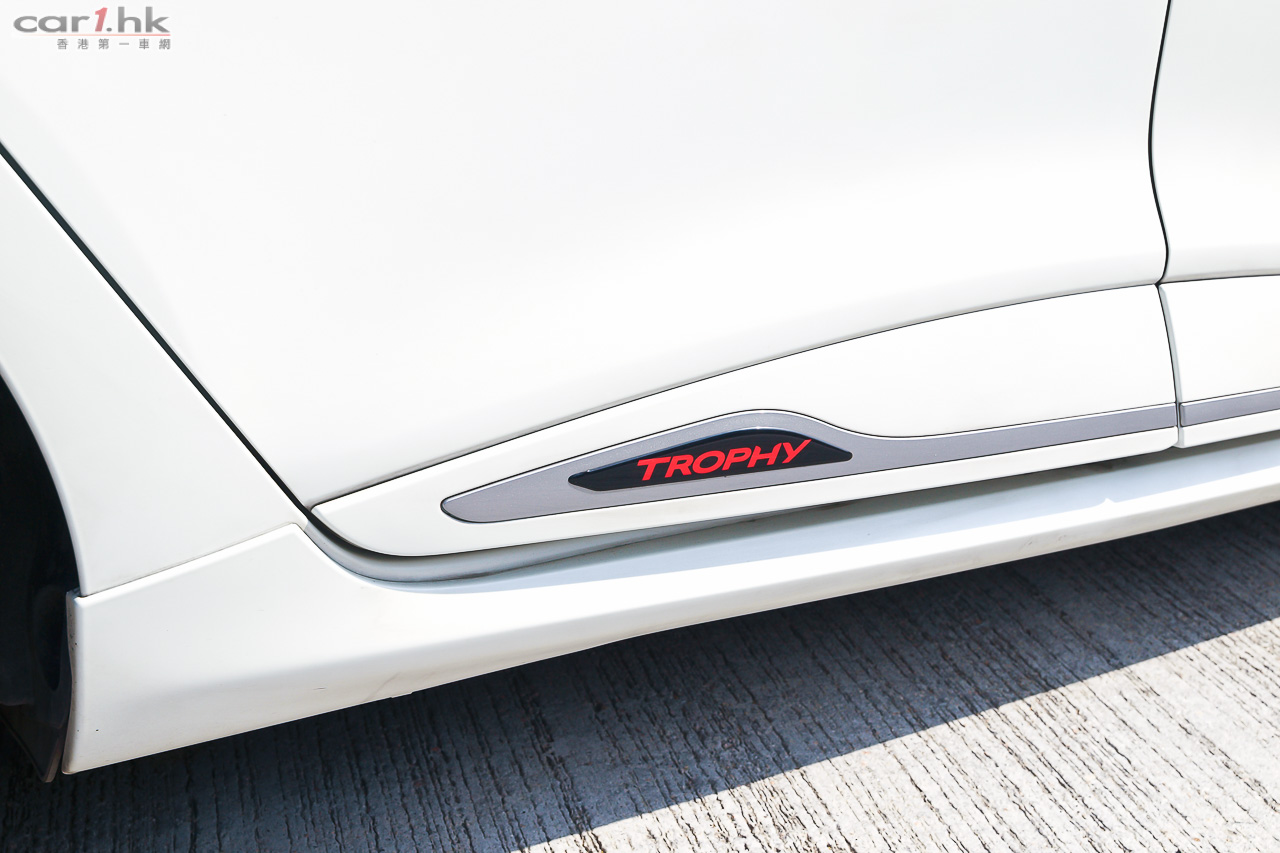 比起正常Clio R.S. 200,Trophy版本的Renault Clio R.S. 220有多20匹輸出,多20牛頓米扭力,overboost時更可再多20共40牛頓米,有改良排氣系統,它的改良EDC雙離合器波箱轉波更快,現最快只需120微秒;懸掛有更硬的吸震筒,前後ride heights分別降低20和10mm,轉向系統更快反應,用18吋米之蓮 Pilot Super Sport輪胎,輪圈是新設計;車身在前唇有「Trophy」紋身,門檻牌有生產號碼,車廂改用碳纖紋和啞色電鍍裝飾,2.0新版R.S. Monitor顯示屏,還有連頭枕的新跑車櫈…… 每一項聽進耳內,都令我雙目失焦的原地站著,幻想效果會是如何。