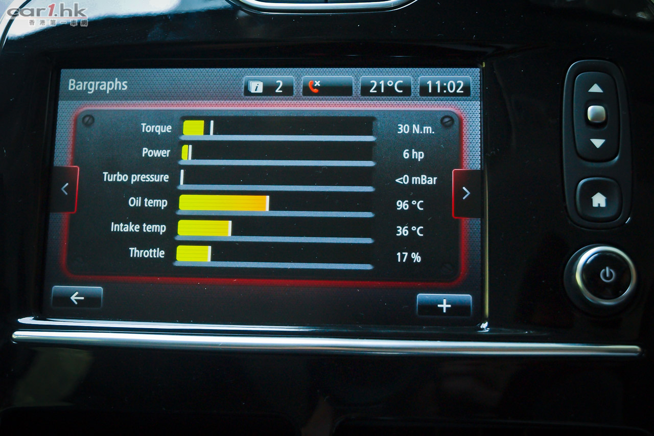 2.0 版 R.S. Monitor 顯示屏,有更靚的圖案和更多介面,顯示衛星導航、車輛設定、G-force 圖、即時馬力/扭力輸出、turbo壓力/油溫/進汽溫度等。