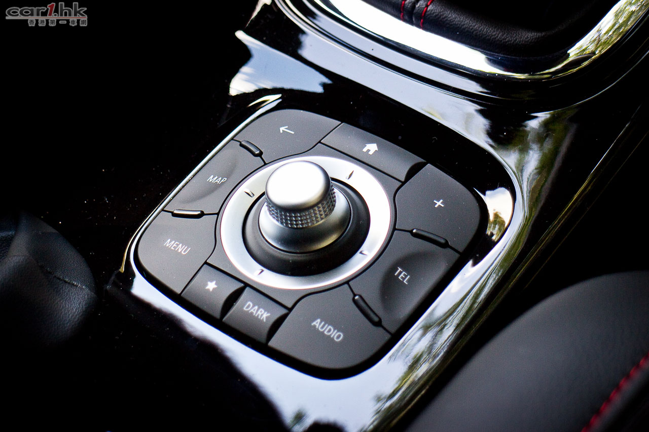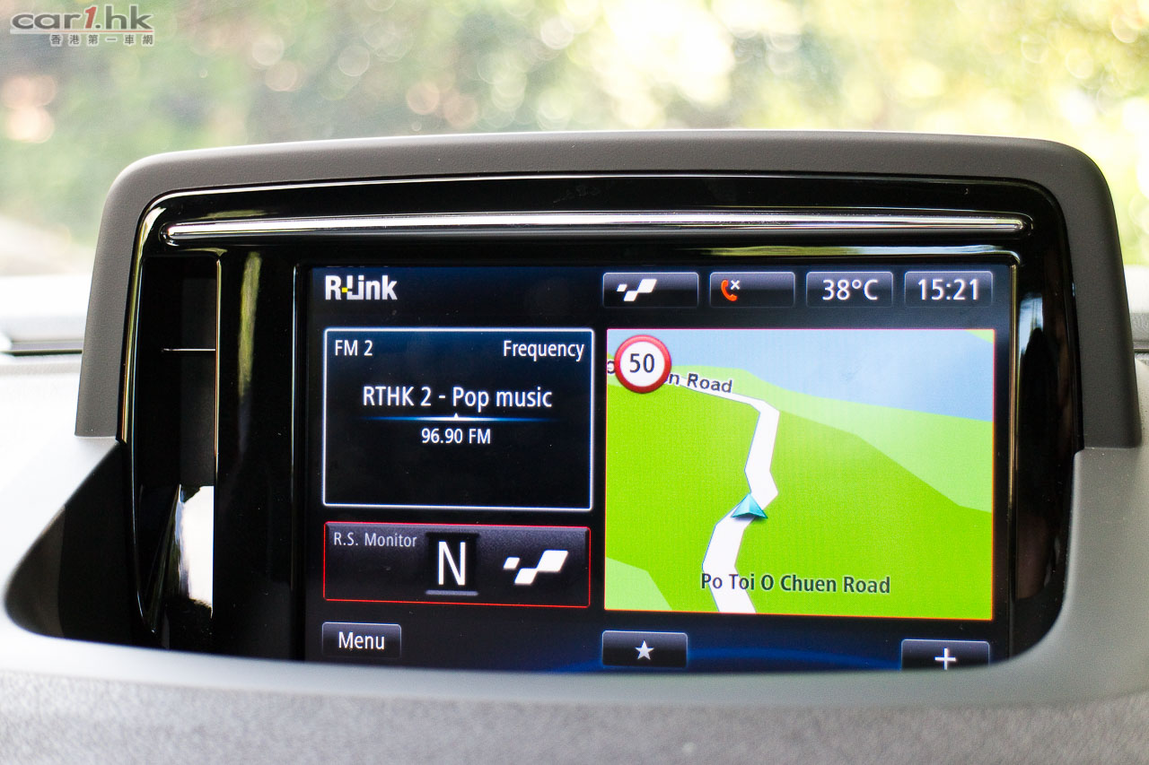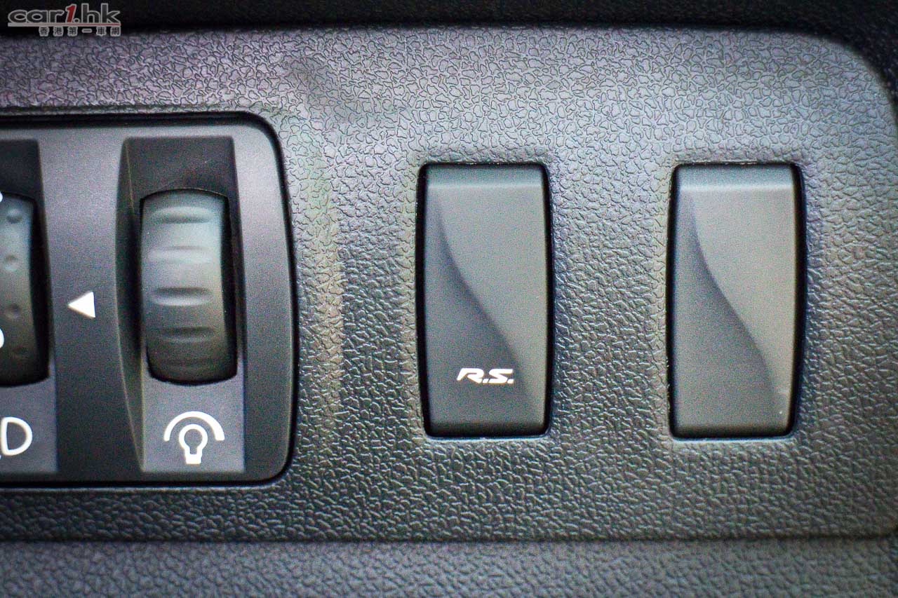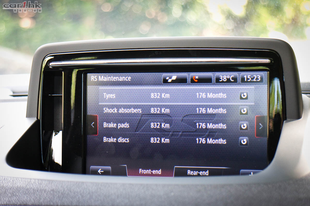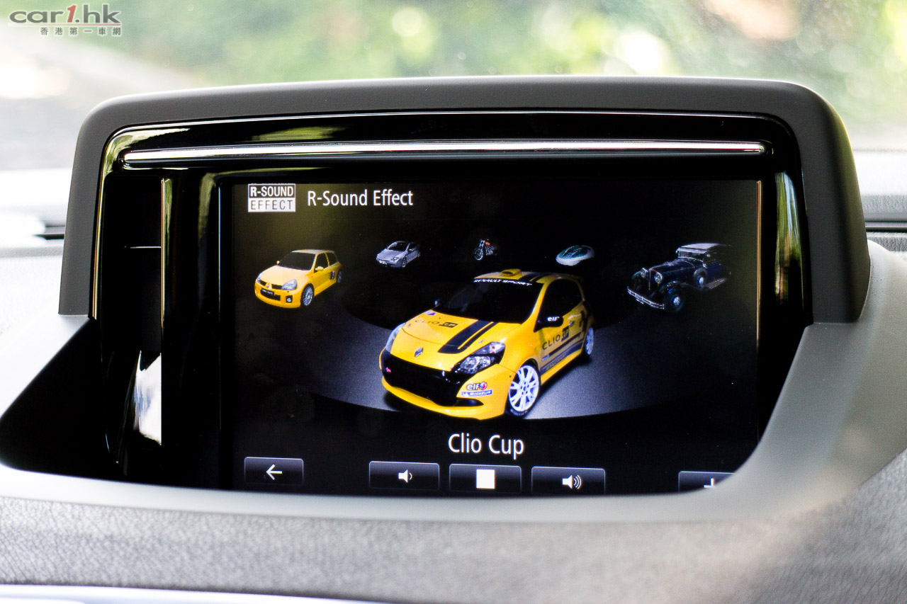 車廂裡,同形狀的 Recaro 座椅,皮革/纖維布混合,貼身的側墊和角度向上的椅墊,既夾腰又兜大腿,賽車感覺強,落場駕駛能提供很好的承托力,但日常用,長久並不很舒適。舊款車廂見到的黃色安全帶、波棍和軚盤黃色縫線,這部變為紅色。R.S. 獨有的軚盤 12 點「回中」縫線、鋁質腳踏、碳灰色扮碳纖維花的錶板飾塊、椅背和錶板等地方上的「Renault Sport」Logos 一樣;還有是那接合得極快的離合器,極難吊 clutch 和控制得順暢,起步死火是常事,但起行後索性彈clutch轉波,能提供極快捷的接合反應。難於 heel-and-toe 的腳踏位置,當然維持一樣。唯一不同的,是錶板上的 R.S. Monitor 顯示屏,舊款像是隧道入口的小盒蓋,新款改用像是 tablet 平板電腦的 touchscreen 彩色顯示,除馬力、扭力輸出、turbo 壓力、油門角度、進氣溫度、機油溫度、G-force 錶、Lap times 圈速計時、0–100km/h 和 0–400M 加速計時等原有功能(但有更似打機的圖像)外,R-Link 功能有 TomTom 衛星導航、多媒體控制和免提電話等。新年度的 Megane R.S 售價 $385,000,$40 萬樓下的,很難想到有甚麼高性能類別汽車有比得上它的加速性能、操控樂趣、一見難忘的外形和不算易開的挑戰性。