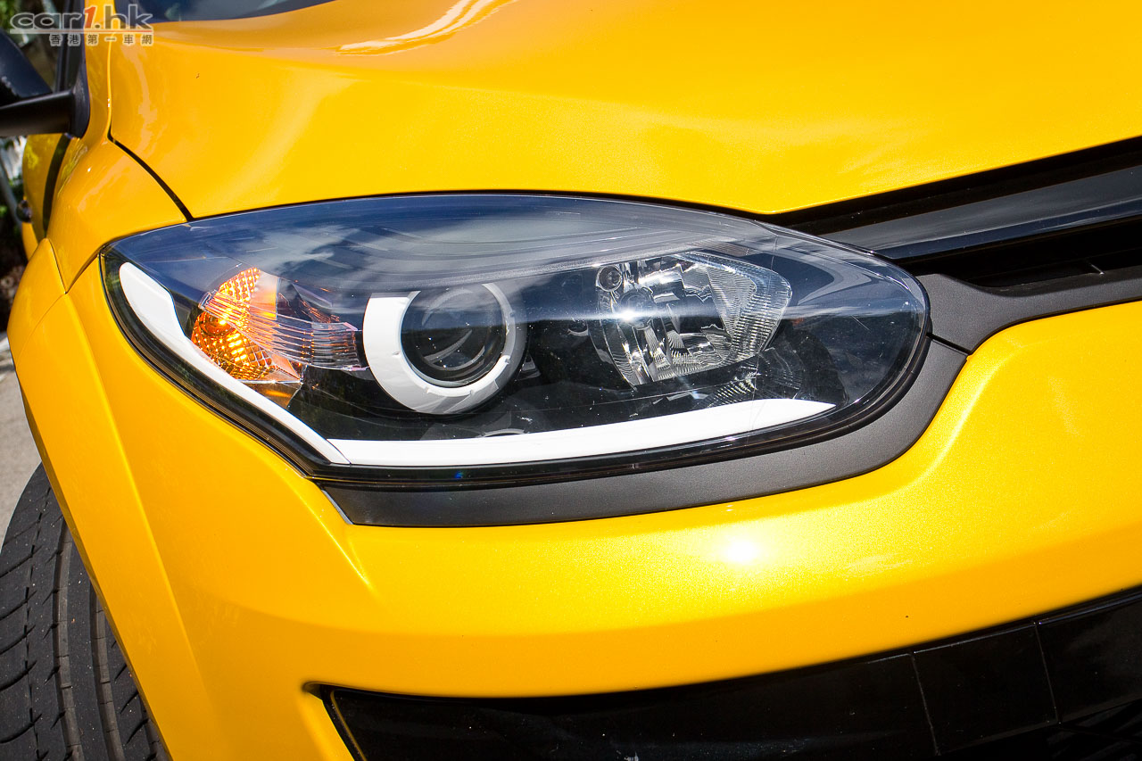 雷諾 Megane 車系於今年年頭全線 facelift,最高性能的 R.S.(Renault Sport)型號當然也有跟隨,改款的地方只限於車頭設計,有不同的頭燈、頭泵把和不同線條的車頭冚;車鼻 Logo 以往獨立貼在黃色車身上,現背景改為一條與 Clio 和剛在香港推出的 Captur 相似的黑色鬼面罩橫間;以往偏側放的「R.S.」Logo,現與新 Clio R.S. 一樣改放在車鼻的「Renault」Logo之下。車側、車尾、排氣喉、輪圈的其他地方完全一樣。車子新增一稱為「R.S. Red Design Pack」的 Option,如下唇般的車頭泵把 F1 Blade、凸出的門邊保護條以及車頂擾流翼會改為紅色。個人而言,我比較喜歡舊款的車頭模樣,看似較為野性,新設計無疑要與其他 Renault 車系建立家族面容,這點可以理解。