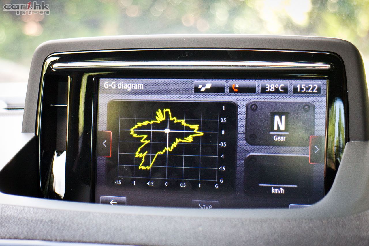R.S. Monitor 內其一最有娛樂性的,是 G-force 顯示圖表,讓乘客知道車子前後左右可達到的最大 G 力。