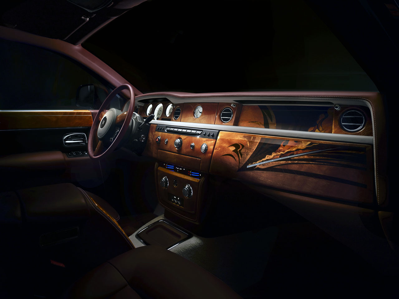 根據聯合國世界旅遊組織的統計所指,中國連續兩年成為全球最大的出境旅遊國家,Rolls-Royce 有見及此特別以「顛峰之旅」為主題,於北京車展推出極盡豪華的 Pinnacle Travel Phantom,車身以酒紅色(Madeira Red)搭配銀砂色(Silver Sand),視覺效果相當豪華。而車廂則以櫻桃紅為主調,再配上大量的真皮包覆和木紋飾板,貫徹一向的品牌風格;最特別之處是置物箱、後座桌面板及車門面皮以超過 230 塊獨立的飾板經過特別組裝,呈現出列車急速飛馳時激烈煙塵的圖案;而且透過 24,633 針的技法把類似的圖案呈現車門的真皮表面,兩者完美融合使車廂將旅遊時瀟灑自在的感覺表現無遺。