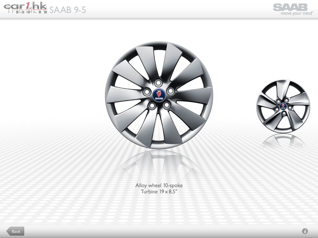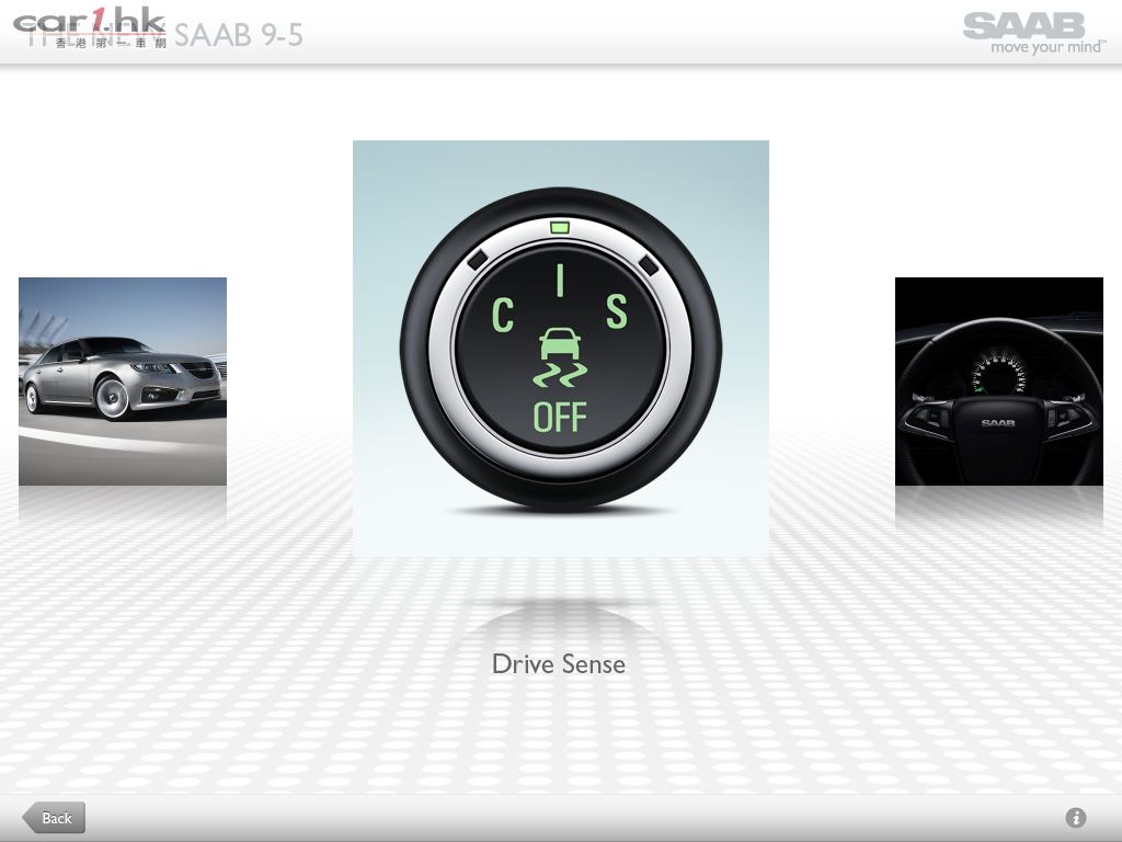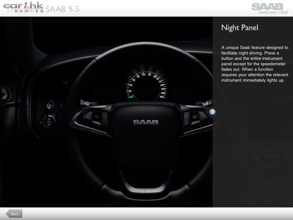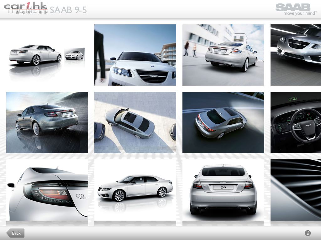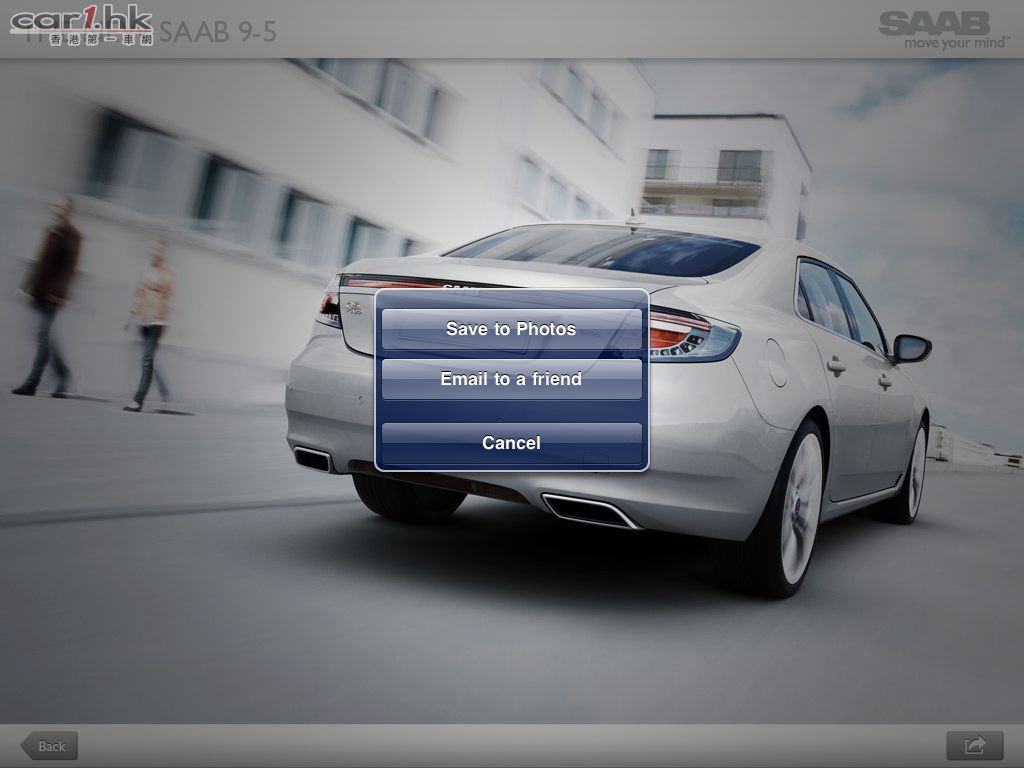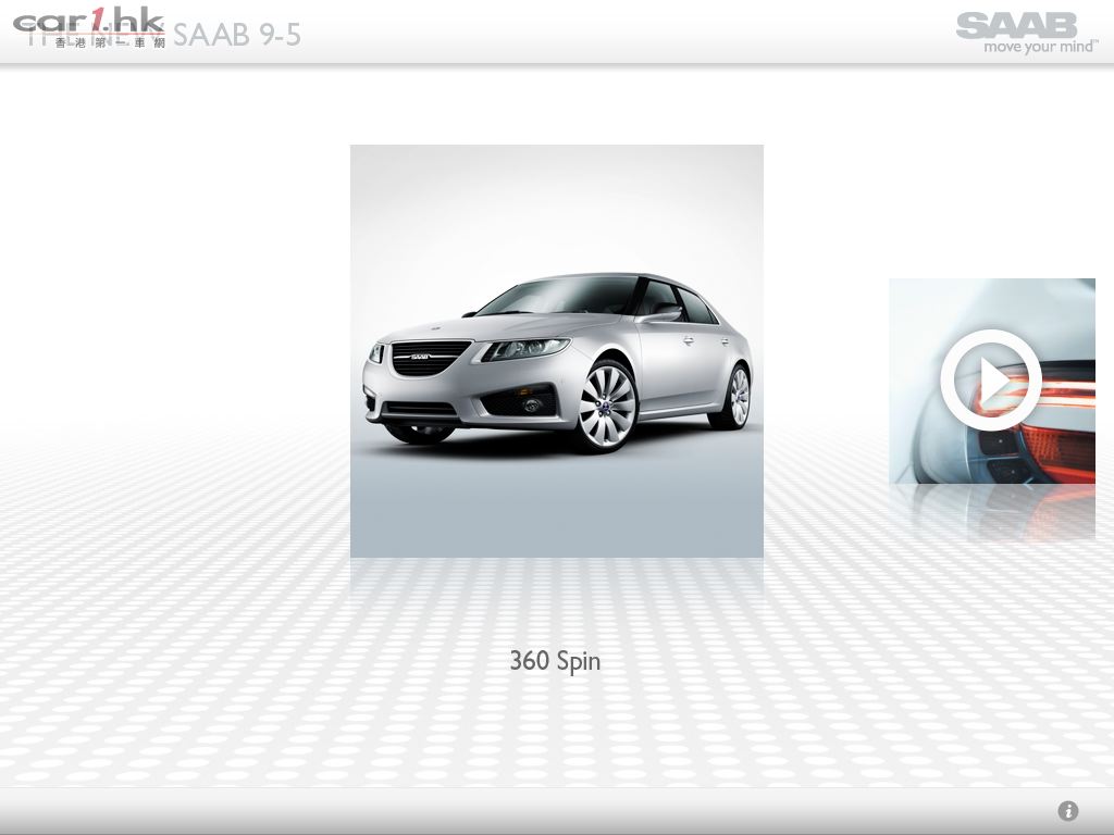 SAAB 於 2010 年推出第二代 Saab 9-5,大家現在可以用 Apple iPad/iPhone 下載 Saab 9-5 程式都可以先預覽一下。這個美觀的程式分為四部份,第一個的 360 Spin 很值得推介。雙按揀選後,只要用手指撥動,即可由車頭睇到車尾。有趣的是,用家還可以揀選其他顏色和車呔,調整後更可即時分享給朋友。