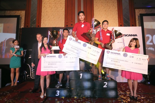 經歷7個月的過關斬將,從超過700位參賽者脫穎而出的最佳10名大師傅日前齊集於Scania葵涌維修廠所舉行的總決賽,為駕駛挑戰賽2014定出最終名次。當中參賽者王永賢先生憑著獨步非凡的車輛操控技巧,力壓其餘9位參賽者,榮登「全港最佳司機」寶座,並獨攬100,000元的巨額冠軍獎金。馬慶嘉先生及郭紹豪先生分別奪得今屆比賽的亞軍及季軍,並贏得30,000元及10,000元的豐富獎金。而只得23歲的杜仕傑先生則榮膺本年新設的最年青司機大獎。