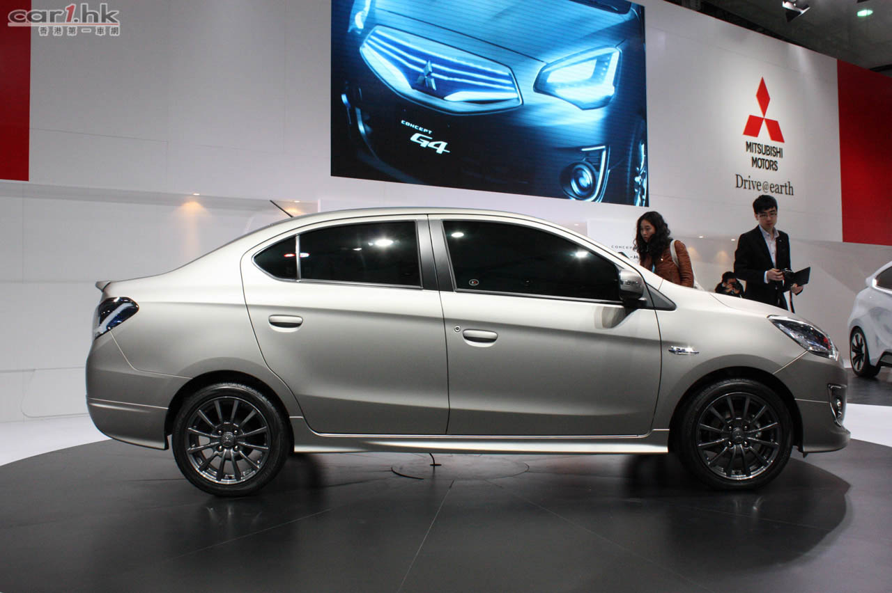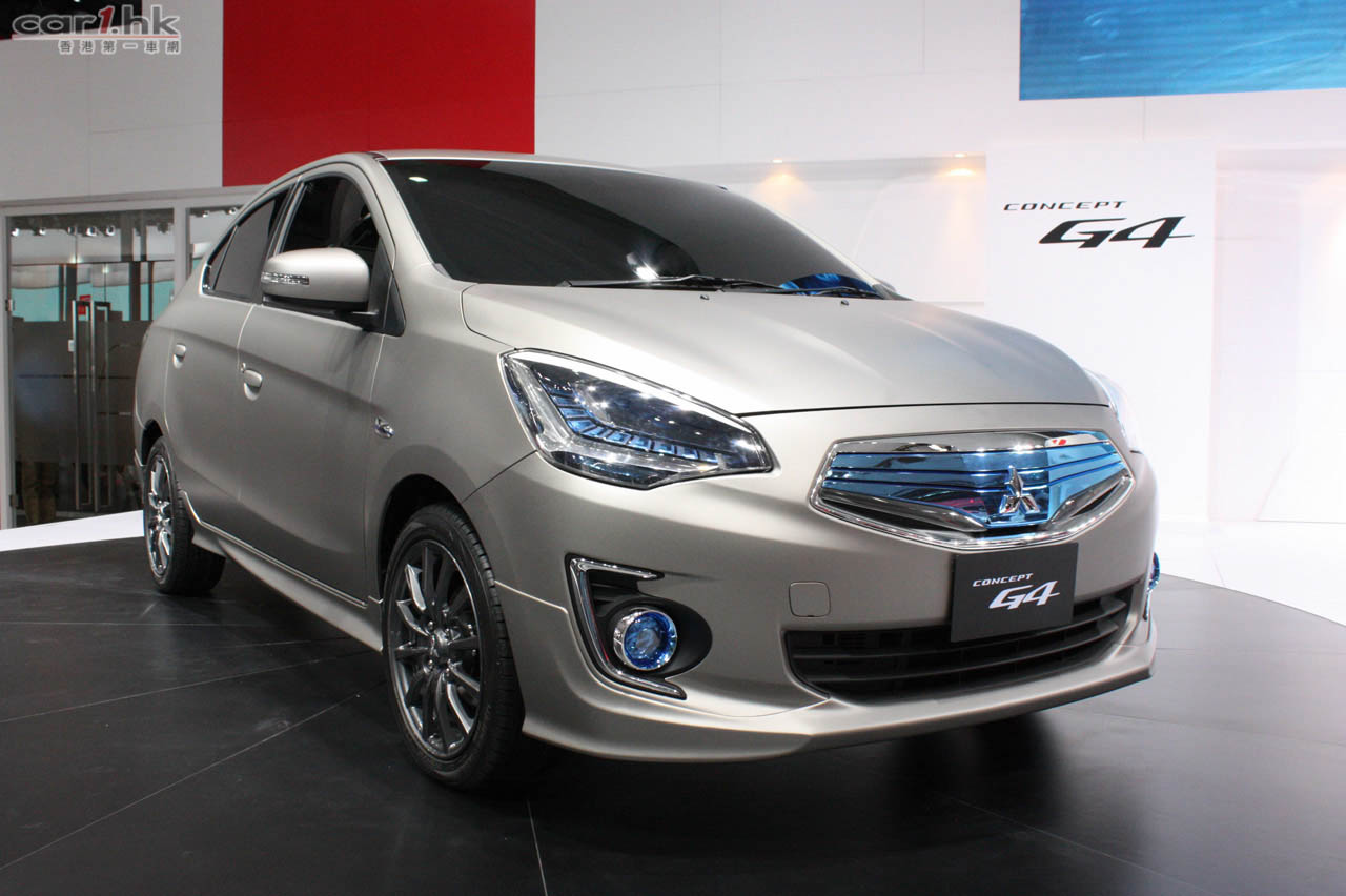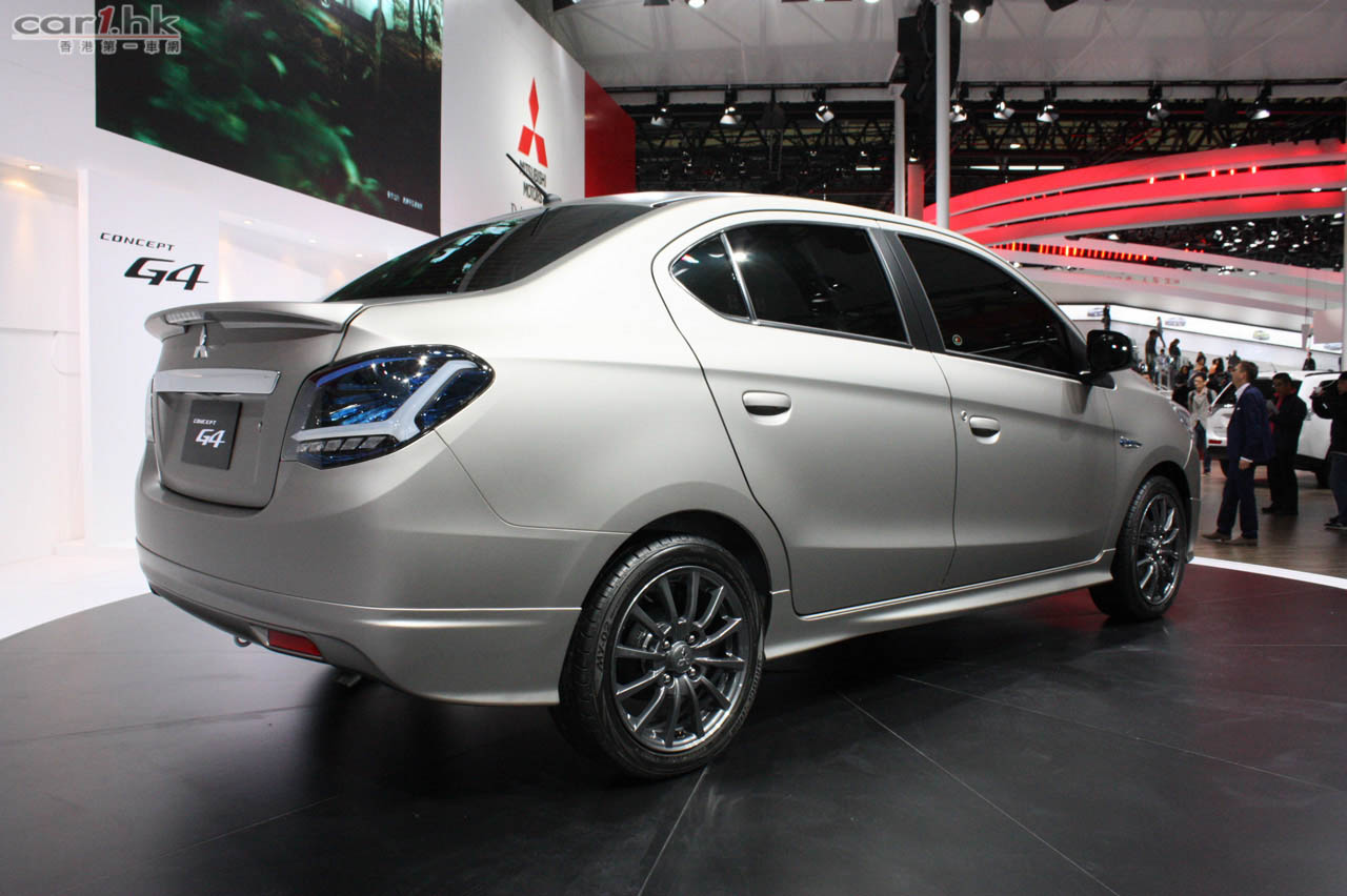 三菱汽車全新開發的新一代車型 Mitsubishi Concept G4 亮相上海車展。車頭採用高透明度且閃爍生輝的切割鑽石鬼面罩和頭尾燈組,配合明顯精桿的肌肉線條,在路上馳騁而過時給人留下強烈的存在感。Concept G4 的短車頭設計提供良好的前方視野,以及更優異的操控性,同時更兼顧出色的車廂空間。根據了解,Concept G4 將會使用 1.2 升 MIVEC 汽油引擎以及 CVT 無段式變速箱,雖然沒有公佈實際輸出,但使用相同引擎的泰國版 Mirage 則有 78 匹馬力和 100 牛頓米扭力,所以 Concept G4 動力應該與 Mirage 相當。此外,Concept G4 使用 RISE(Reinforced Impact Safety Evolution)車體架構打造,並通過各種減重措施,令油耗在同級別車型中能處於領先地位。