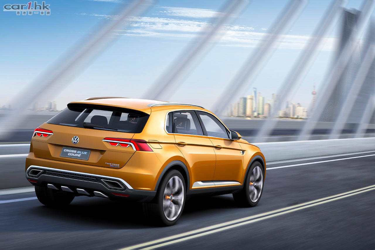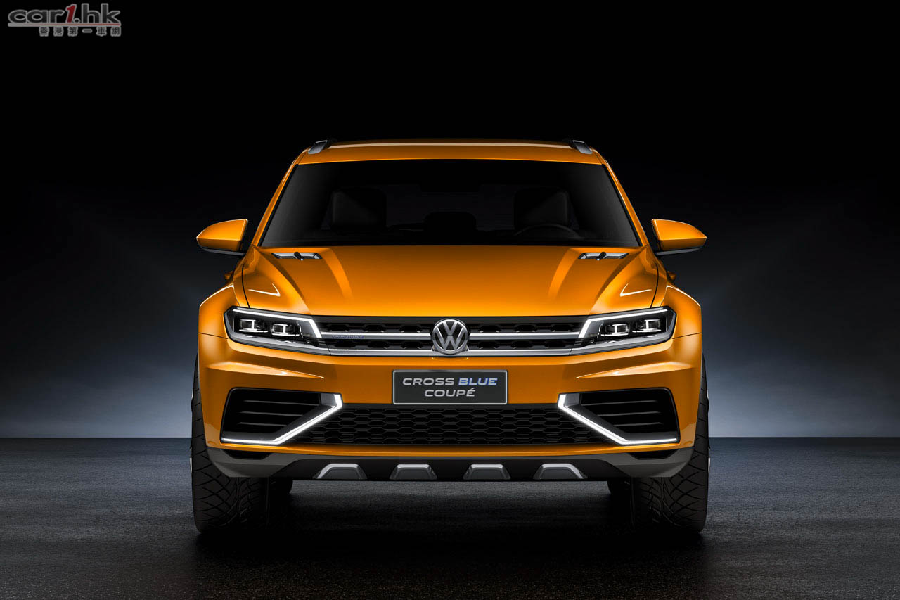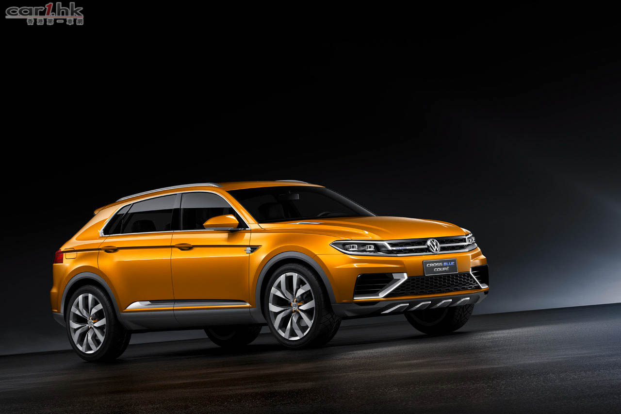 Volkewagen 為上海車展帶來了全新的 CrossBlue Coupe Concept,SUV 的車身尺碼卻冠上 Coupe 之名,正如名字 CrossBlue 所指,這是一款跨界的車款。CrossBlue Coupe Concept 的尺碼為長 4,889mm、寬 2,015mm、高 1,673mm,與傳統 SUV 相差不遠,但車頭延伸至車頂的斜度更大,再加上類似 Coupe 車型的車頂曲線和掀背尾門,讓這款車看起來帶有一點 Coupe 味道,而行李箱標準容量也有 537 公升,在摺疊第二座椅後可提升至 1,101 公升。CrossBlue Coupe Concept 採用全新 3.0 升渦輪增壓 V6 引擎配合兩台電動發電機組成全新的插電式混合動力系統,綜合馬力可輸出 409 匹及 699 牛頓米扭力,由靜止加速至 100km/h 只需 5.9 秒,極速可達 237km/h,根據廠方表示百公里油耗為 7.0 升。在純電動模式下的續航距離為 34 公里,最高速度為 121km/h。CrossBlue Coupe Concept 提供五種模式 Eco 經濟模式、Sport 運動模式、Off-Road 越野模式、純電動模式和充電模式。
