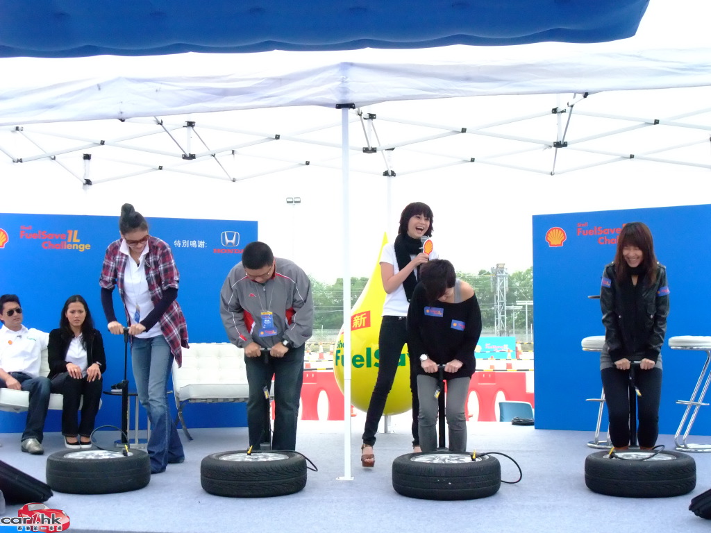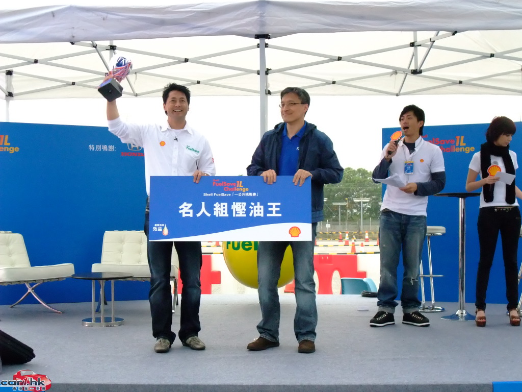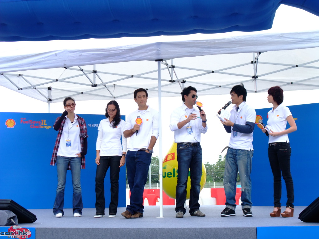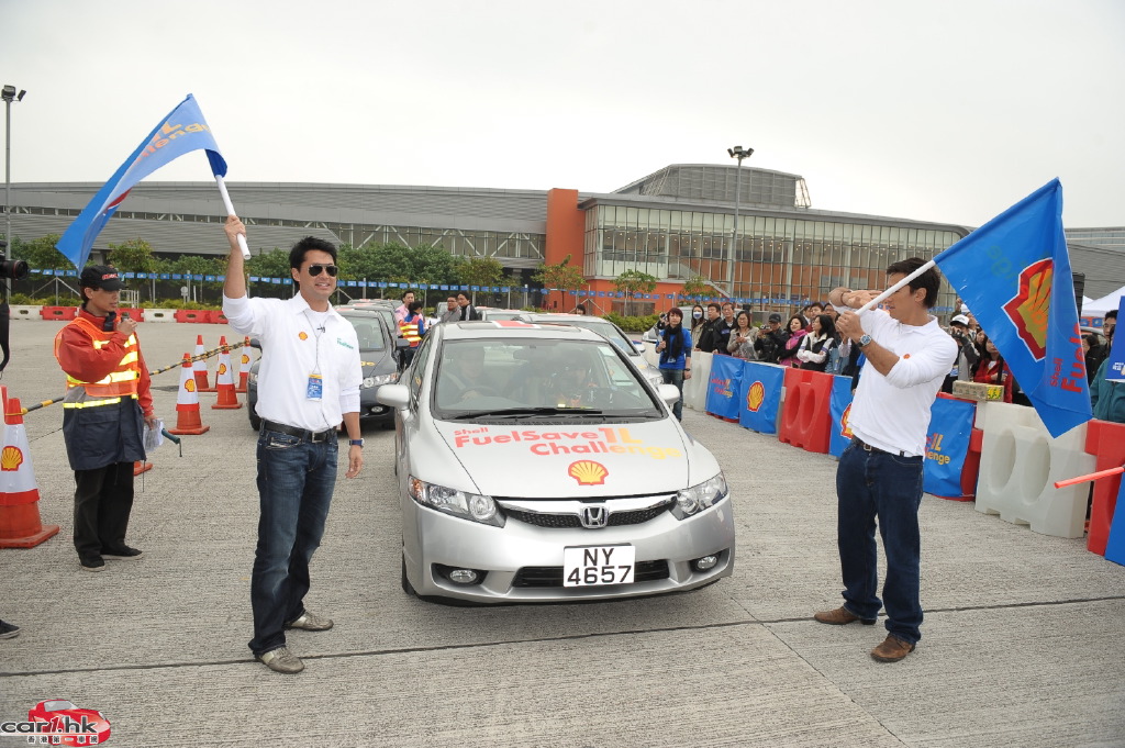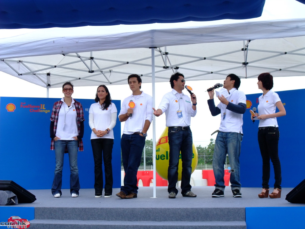 一眾參賽者紛紛以一公升油挑戰最遠駕駛紀錄,親身體驗憑使用 Shell FuelSave 得來的額外里數!Shell 慳油大使王敏德及其圈中好友,包括藝人吳嘉龍、名模貝安琪及Rosemary,與香港蜆殼有限公司董事吳毅洪先生齊齊出席活動,互相較量慳油實力。人氣 DJ 森美在與拍檔吳日言擔任大會司儀,跟出席的嘉賓及觀眾大玩遊戲及大送獎品之餘,亦不忘粉墨登場,親身體驗比賽的刺激氣氛,測試自己的慳油技術。