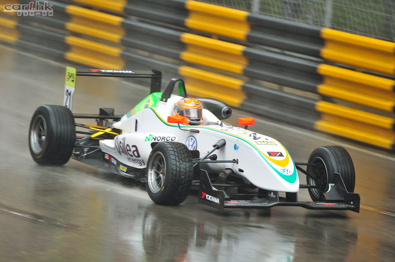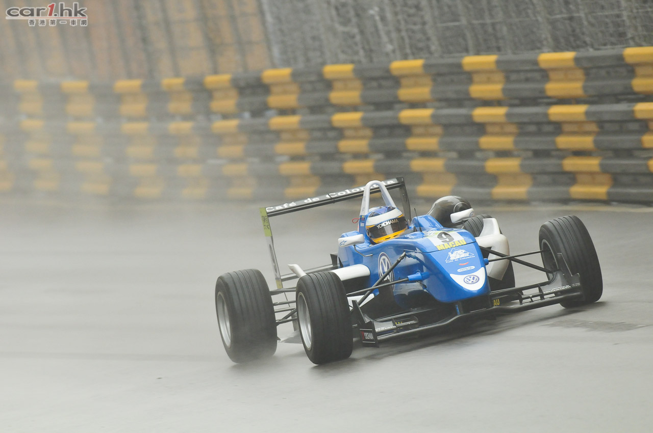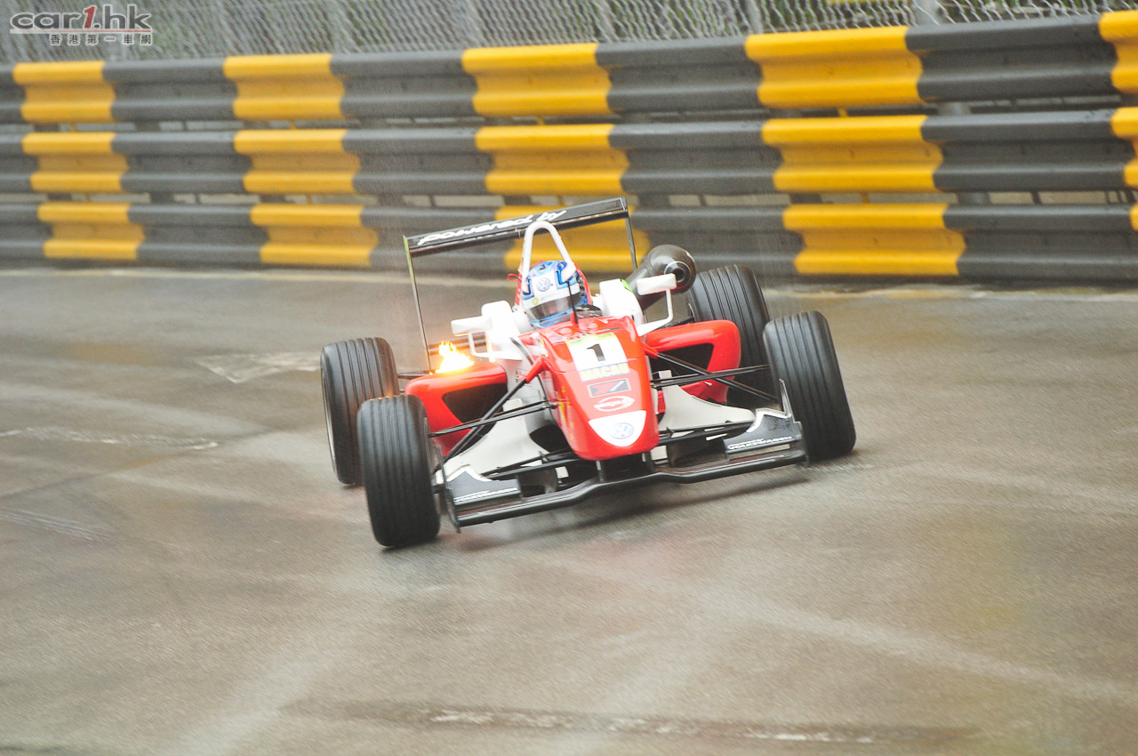 早上天雨令賽道十分潮濕,雨勢更在練習期間增強,一眾車手要在大雨開始首節練習。韋達文(車款為:Dallra Volkswagen)在澳門格蘭披治三級方程式大賽首節練習領先。下雨令賽道濕滑,練習事故頻仍。