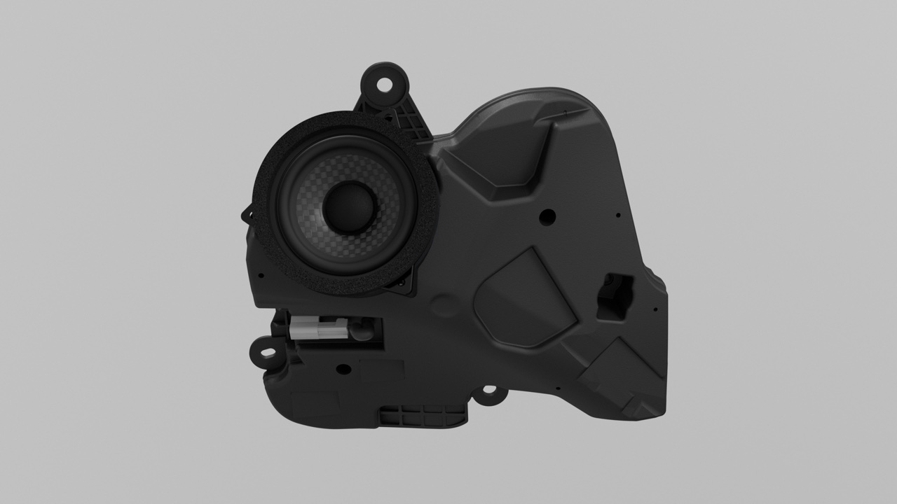 走進車廂,這才是 AFEELA 1 真正展現「肌肉」的地方。這裏沒有誇張的皮革堆砌,取而代之的是一場聽覺盛宴的硬件佈局。車內驚人地配置了多達 28 個揚聲器,這並非單純的數量堆疊,而是經過精密計算的聲學陣列。從前方的三路分音系統,到頭枕、車頂甚至座椅內部的震動單元,每一個位置都經過深思熟慮。特別值得一提的是,這些揚聲器並非現成零件,而是 Sony 專為此車開發的特注品,採用了多層碳纖維複合振動板,務求在中低音的深沉與高音的通透之間取得完美平衡。最令音響發燒友驚喜的設計細節,莫過於工程師將通常置於尾箱的超低音(Subwoofer)移至車廂中央的中控台下方,並採用「Iso-Barik」對向配置。這種打破常規的佈局,解決了低頻傳遞的時間差問題,讓低音不再是從後腦勺傳來,而是從身體中心擴散,帶來拳拳到肉的實體感。