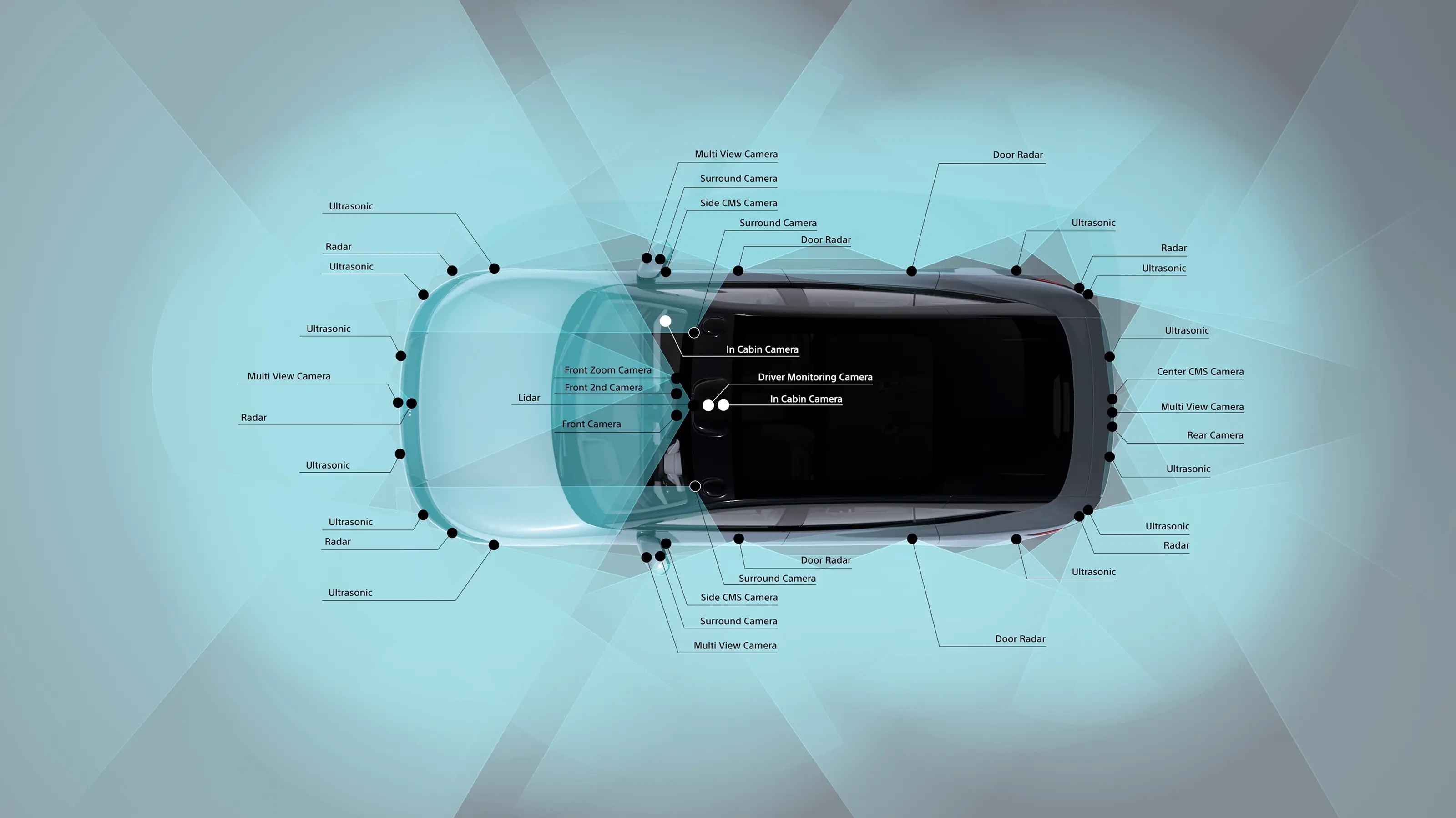 為了獲得最佳視野,AFEELA 團隊大膽將LiDAR與攝影鏡頭設置於車頂,這個選擇並非為了造型犧牲科技,而是反映品牌對「世界最高水平ADAS」的決心——設計之上,還有對安全與智能的執著。