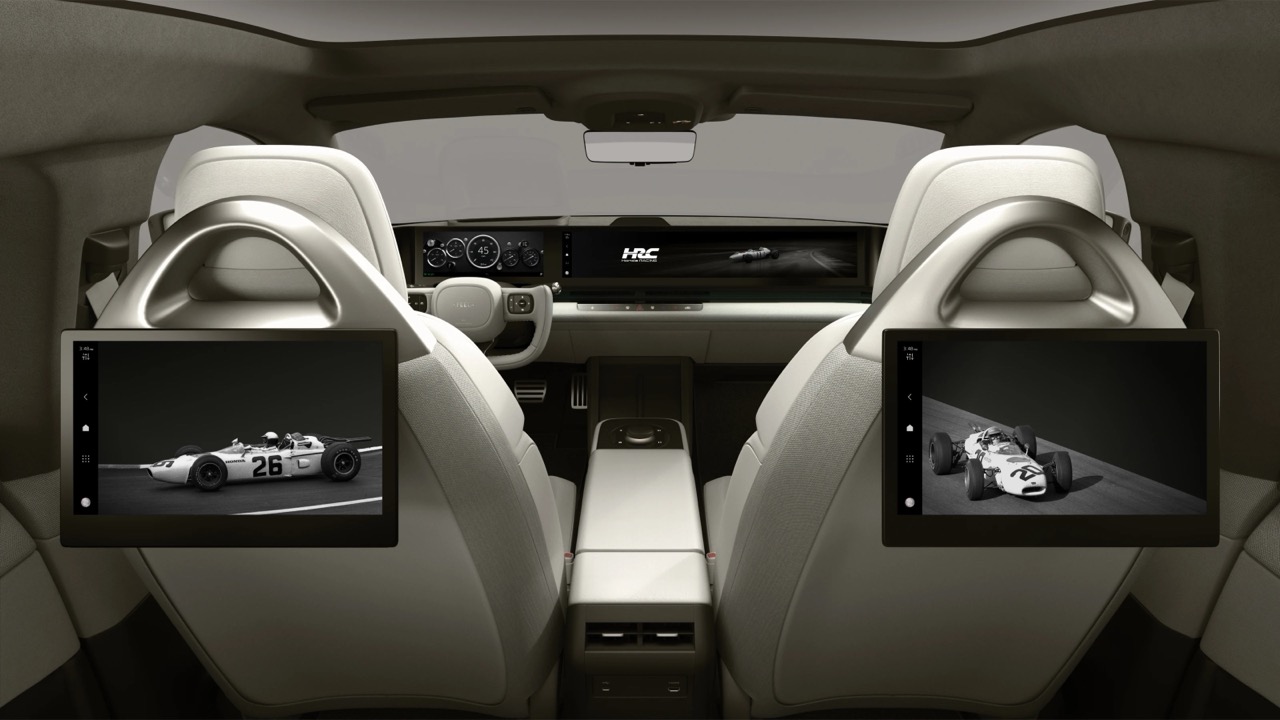 是次合作的核心在於 AFEELA 的車內空間氛圍系統。當駕駛者選擇 HRC 專屬主題時,車內的全景儀錶板、環艙氣氛燈,甚至車外的 Media Bar 資訊列,都會同步轉換為以 RA272 為靈感的經典設計語彙。最令人振奮的是,研發團隊特別邀請了 Polyphony Digital(《Gran Turismo》系列開發商)以及前 Honda 廠隊車手宮城光,於櫪木縣 Mobility Resort Motegi 賽道,實地收錄了 RA272 身上那台 1.5 升 V12 引擎的原始聲浪。這段被譽為「Honda Music」的迷人音效,將轉化為 e-Motor Sound 動態模擬聲,並根據駕駛者的油門開度實時反應,讓人在無聲的電動車室內,亦能感受到 60 年前那份機械與速度的激情。