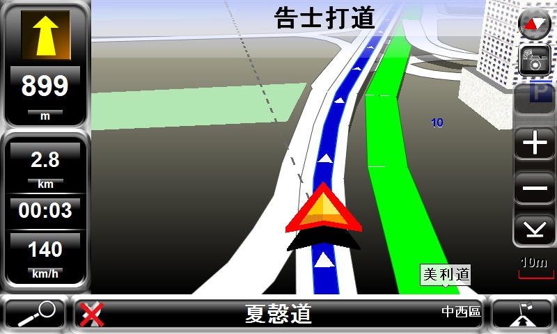 該產品可以通過聯網獲得實時的路況擁堵情況,並以不同那個顏色表示;在規劃路徑的時候,系統會自動的參考道路的擁堵情況,從而確保最快的到達目的地。