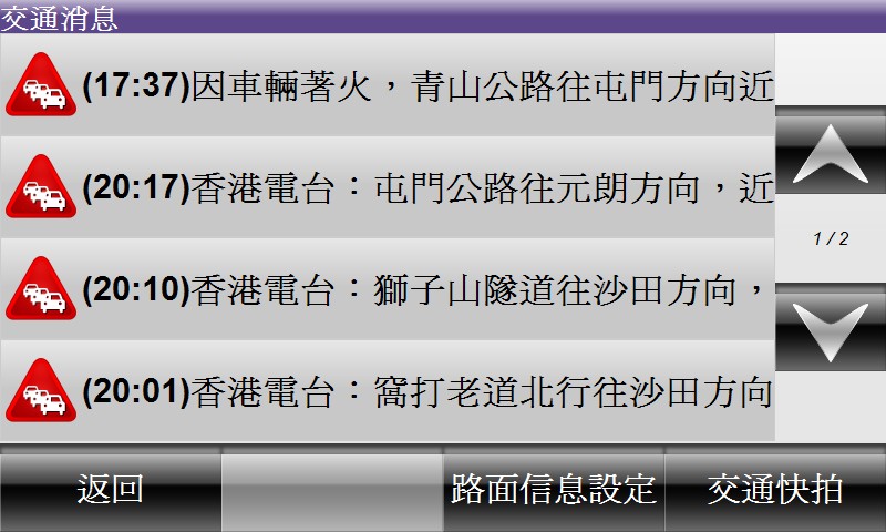 用戶通過 GPRS 及 Wi-Fi 上網即可獲取由香港政府提供的全港 170 個路況鏡頭,出車前 check 一 check,又或者計劃行隧道前 check 下有沒有塞車,全港交通情況一目了然。另外,可接收電台和運輸署處交通消息,如交通改道與交通意外道路,資訊全部一清二楚,輕輕鬆鬆就可避開塞車。