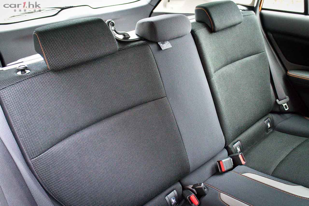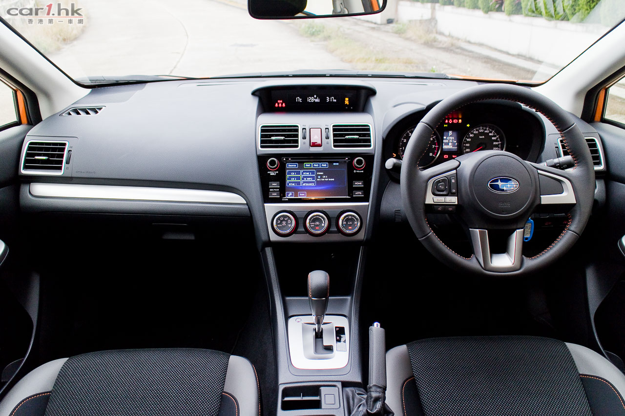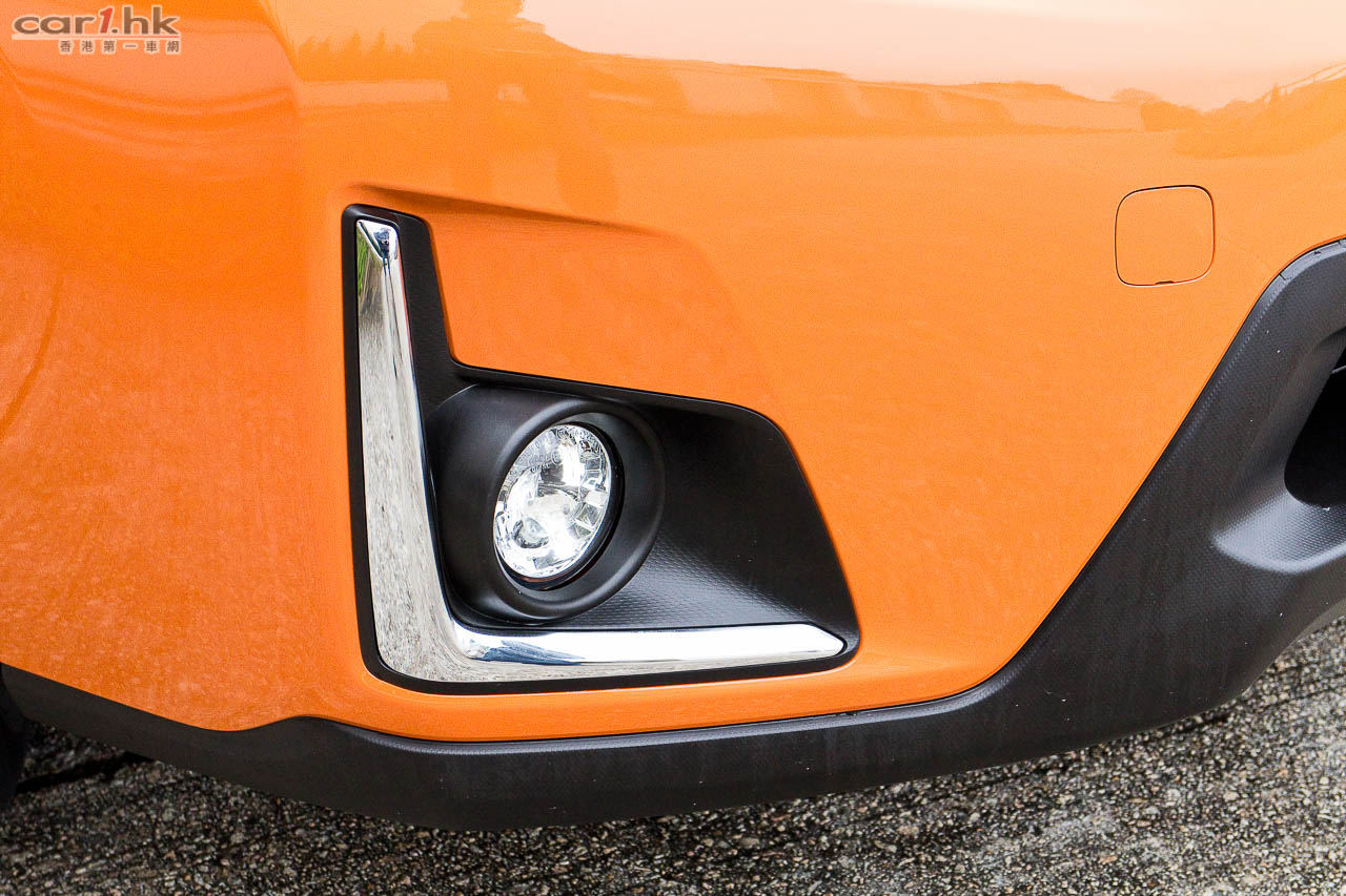 這部 1.6 公升的 Subaru XV,在外觀看與 2.0 公升版本沒有太大分別,體積是一樣的。它同樣配用最新的車頭泵把設計、頭燈、霧燈。車頂沒有了香港人很小用的旅行架。輪圈同樣是硬朗設計款式,大小為 17 吋。所以單看外表,兩部車難以分辨。由於是小改款,內外轉變不算太大,內裝同樣簡潔舒適。中控台部份設有輕觸式音響,十分易用。車椅使用雙色配襯,再以橙線縫合,感覺十分年輕。入門版要注意的是,它沒有了轉檔撥片、定速巡航系統、按掣啟動引擎、後泊鏡頭、天窗、電動側鏡。而藍牙免提、USB 和 AUX-in 音響依然備有。可說是最實際的功能它都有,可有可無的就刪減了,完全針對要價格要實際而來。