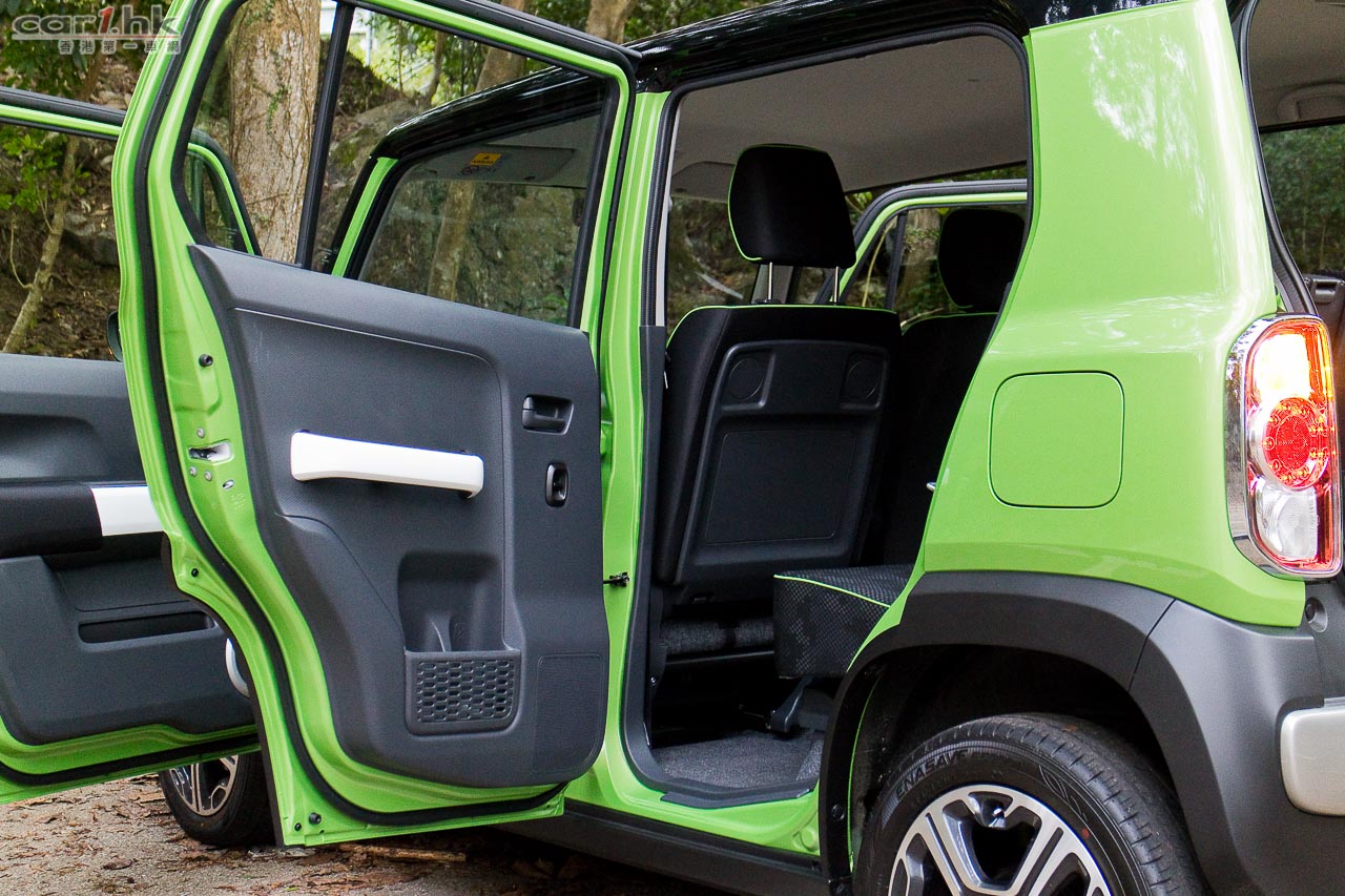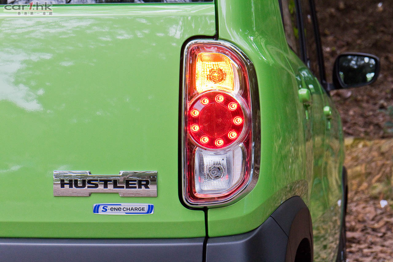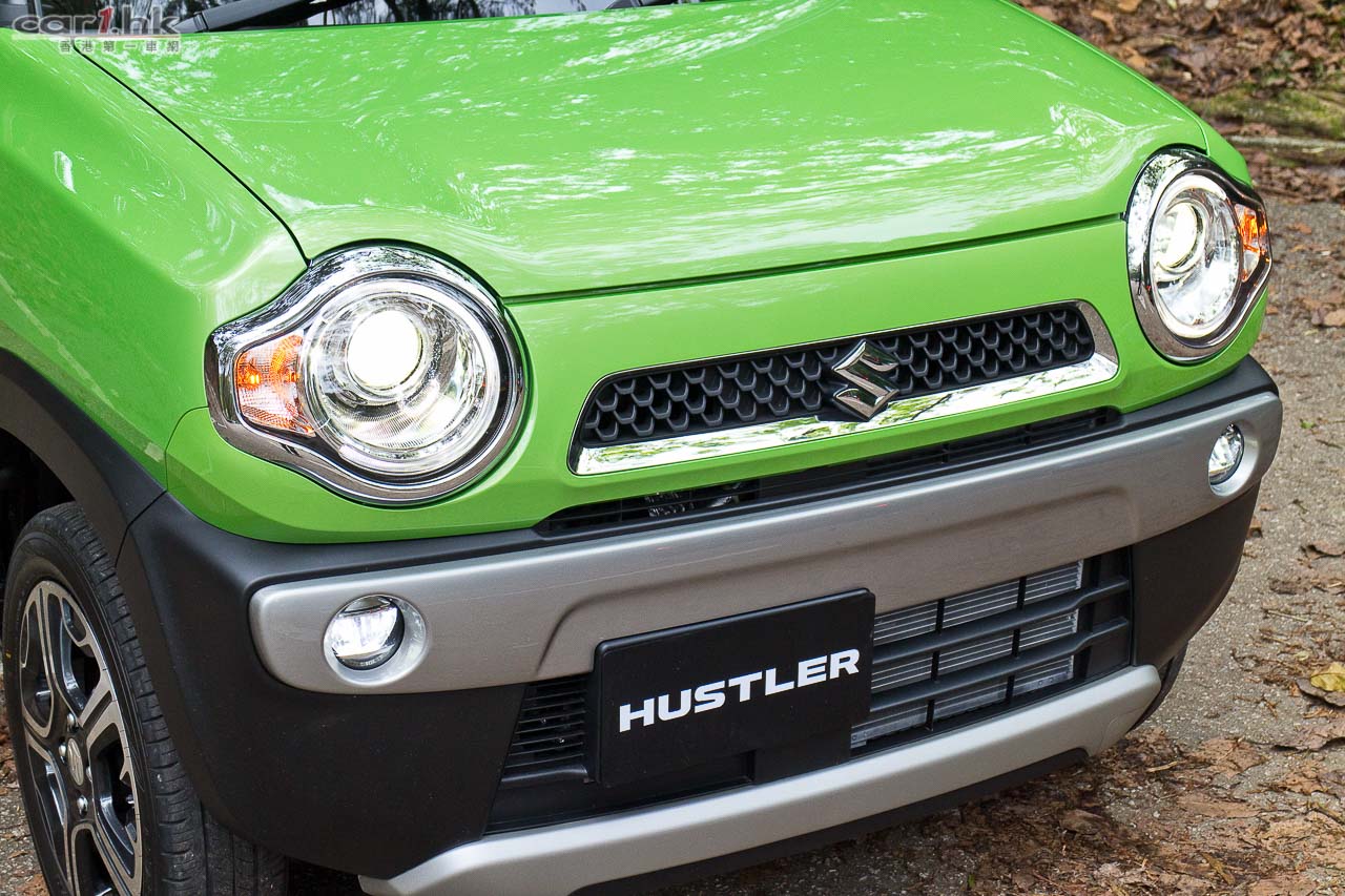 Hustler 是一部 K-Car,引擎自然局限在 660cc 以下,因此車體不會太大,不過這部車出奇地車廂空間感十分強,頭頂空間很好,後座亦可以前後調節,令到這小小的 K-Car 後座一樣坐得舒適,腳部空間很充裕,如果覺得 K-Car 一定坐得不舒服的話,這部車要上一上車感受一下了。今次 Hustler 賣點不算小,首先是它的復古注入現代汽車元素的外觀,車身似盒仔,但適當的位置又加入一點圓潤感,圓型的車燈、硬朗的頭尾泵把,高身的車體,令它與過往 K-Car 觀感不再一樣,配合不同的顏色可以有不同感覺,如今次試駕的青色、或者其他鮮豔顏色都令 Hustler 顯得十分年輕,另外還有軍綠色,感覺十分的「MAN」,而代理引入多達 11 隻顏色到香港,相信一定滿足到十分挑剔的香港車主。