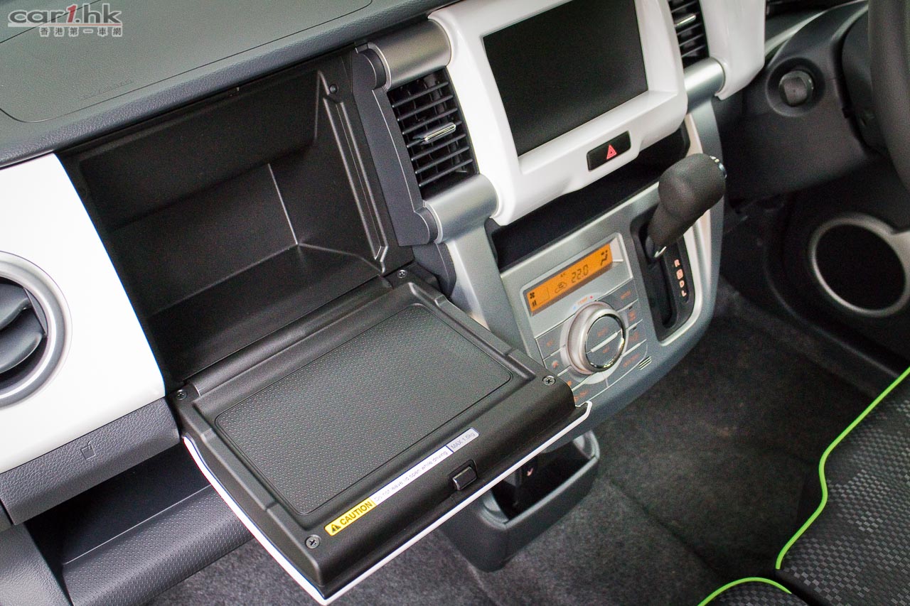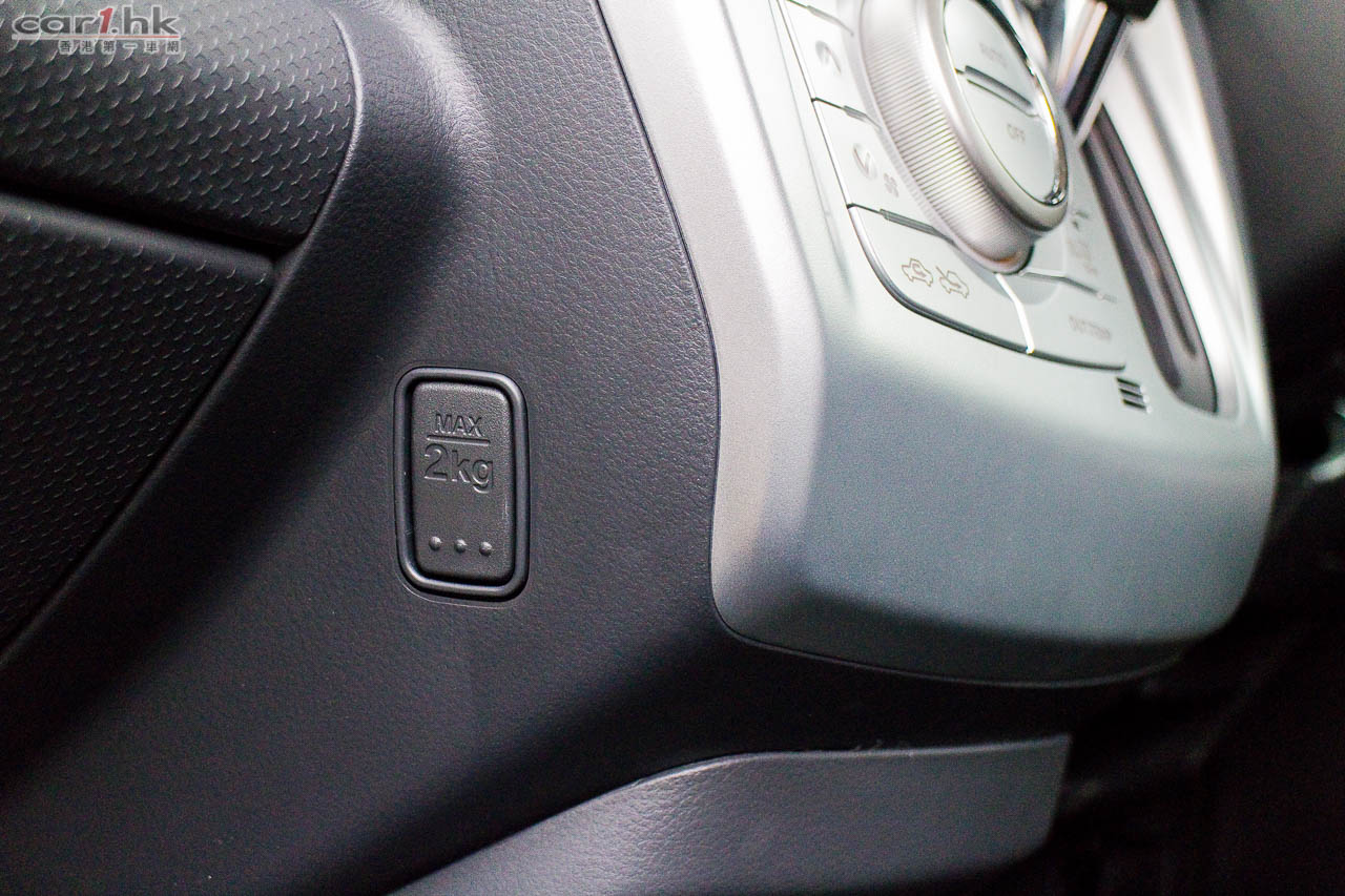 上層儲物箱的門可承重 1.5kg 的東西,放平小型平板電腦、手提電腦也沒問題。