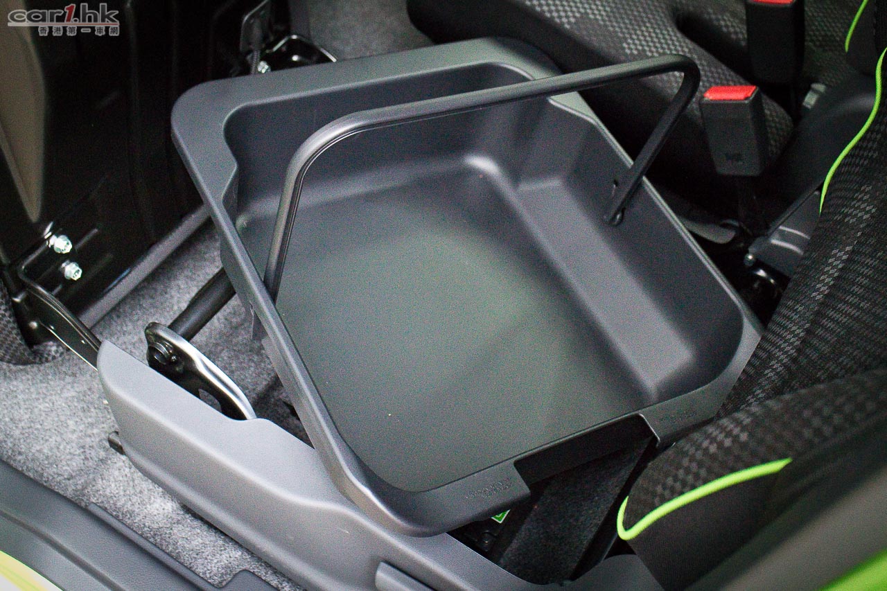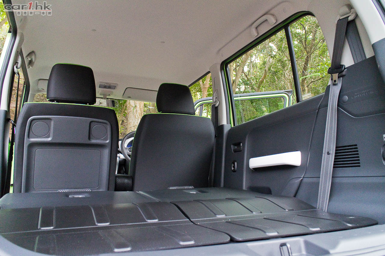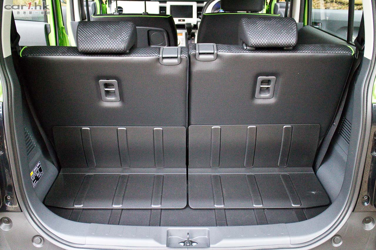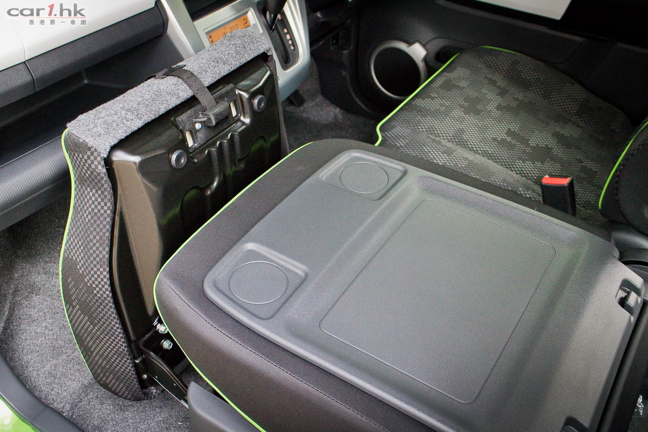 進入駕駛艙後,會感到 Suzuki 在 K-Car 身上的配置絕不手軟,如三幅式多功能軚環、單圈、單色 LED 多功能顯示錶板、恆溫冷氣、大量置物箱、杯架、掛物小勾、Sport 模式鍵、前座暖椅、免匙著車系統,一應俱全。前座乘客位可翻平當餐桌,再配合後座翻平配床褥,可變成流動露營小天地。今次代理還引入了帳幕配件,為喜愛露營的車主來說,更衣、擴展置放行李空間都十分方便。