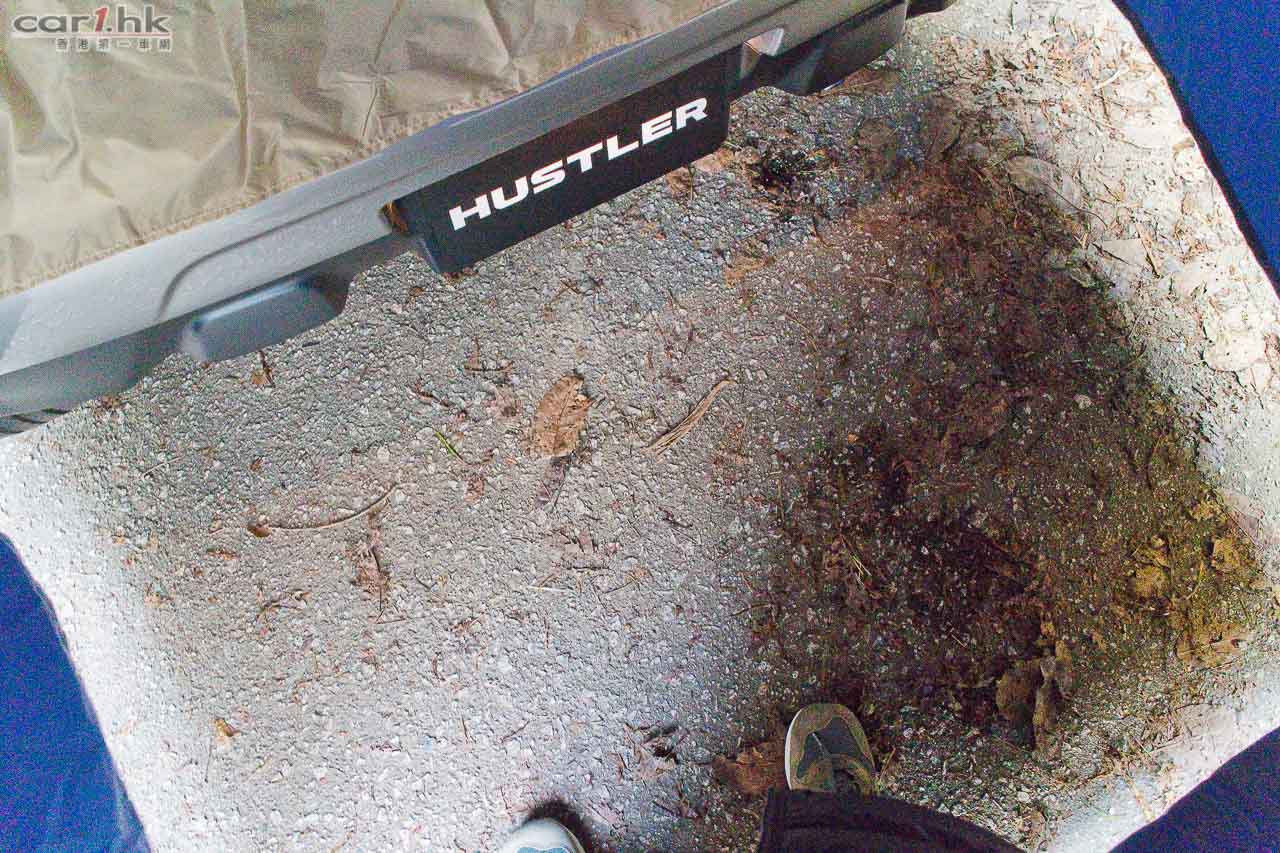 今次試的 Hustler 引擎只有直三氣缸 658cc,配渦輪增壓輔助起步,馬力只有 64 匹和 95 牛頓米扭力,但是在起步方面意想不到的爽快,無需高轉大概 3,000 轉左右就感到加速力,起步進油可以感到車子很快地提升速度,感覺很好。筆者開著它上清水灣大斜路感覺不錯,不再像過往小 K-Car 上斜極度乏力,令人喜出望外,開起來不遜色給日本 1,200cc 小車。Hustler 加入了 S-eNe Charge 系統,借助額外的充電式鋰電池為車上電器提供電力,從而減低引擎、發電機的負荷。油耗方面,廠方數據為 27.8km/L,平均油耗在 $0.4-0.5 之間,所以將 K-Car 作為代步車的話,是十分化算,而且 Hustler 很有自己的風格,加上實用性不錯,相信能滿足到不少香港車主需要。