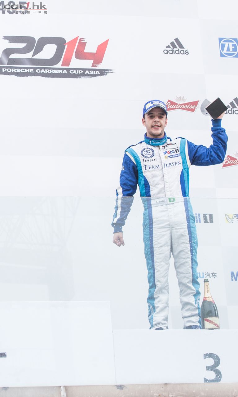 在上週末(5月10日)結束的亞洲保時捷卡雷拉盃第四回合較量中,代表捷成車隊出戰的澳門車手艾明達(Rodolfo Avila)表現出色,以季軍的佳績在珠海國際賽車場收穫了本賽季首個三甲殊榮,並在2014總積分榜上躍升至第五位。