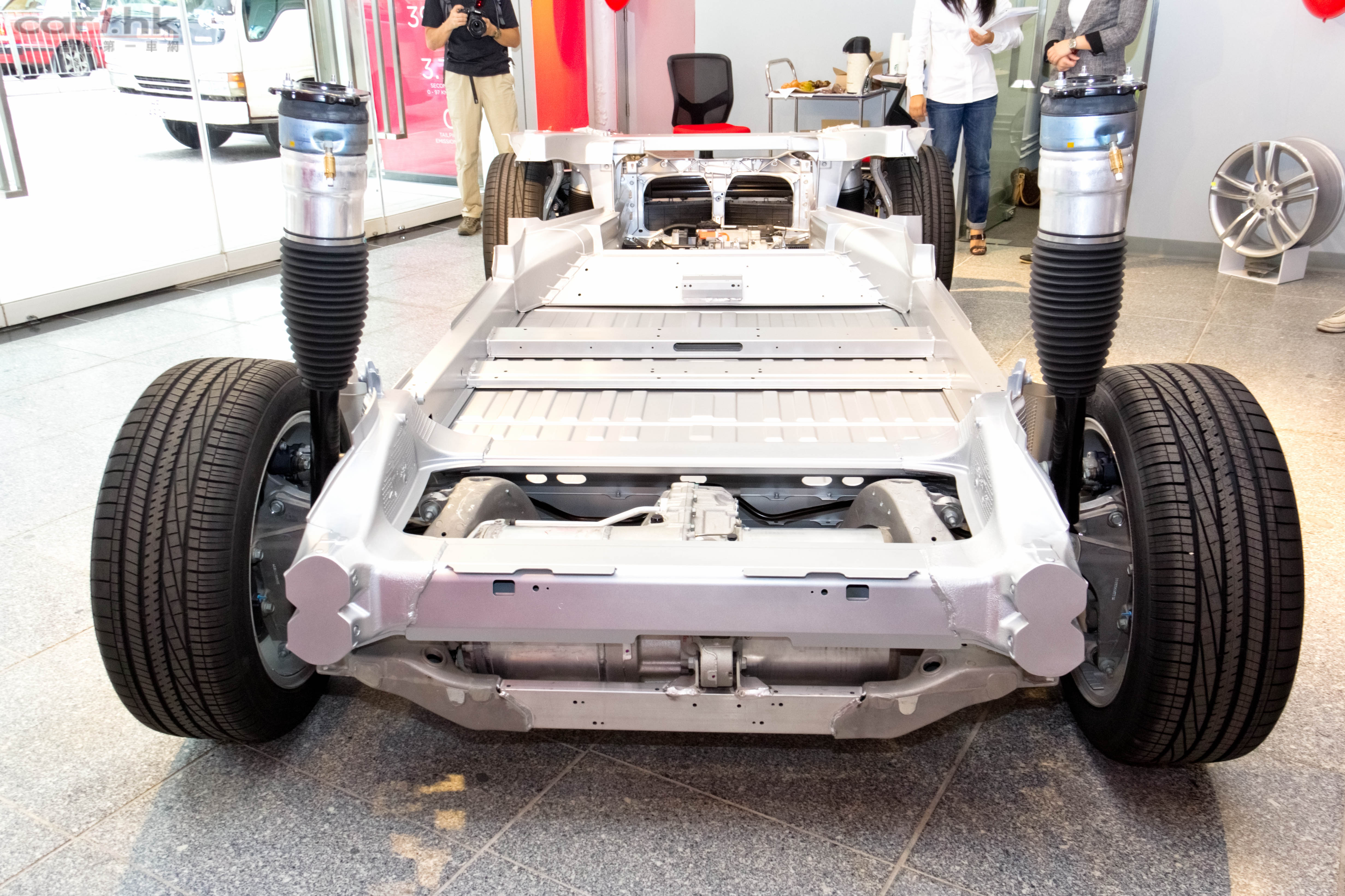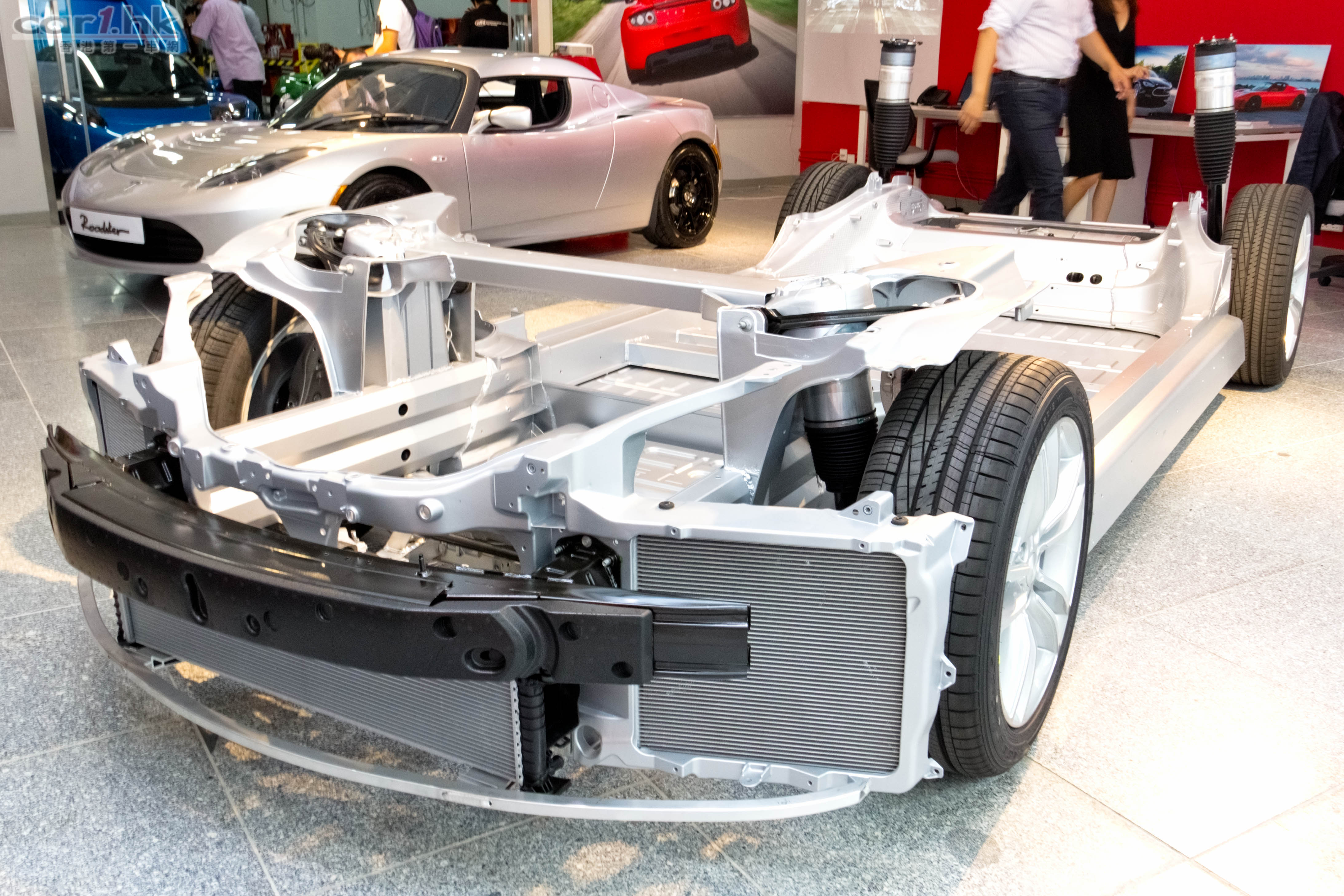 以電動車闖出名堂的美國車廠 Tesla,在 2009 年發佈全新電動 5+2 座位房車設定的 Model S,備受全球好評,至今已接受逾 12,000 張訂單,證明電動車絕對有市場。經過 2 年時間後,今年 6 月 Model S 正式開始交車。而為了讓車迷更了解有關 Model S 的技術和電動車的優點,其底盤裝置早前於東京揭幕後,迅速運抵本港,並於荃灣沙咀道皇廷廣場陳列室展出。