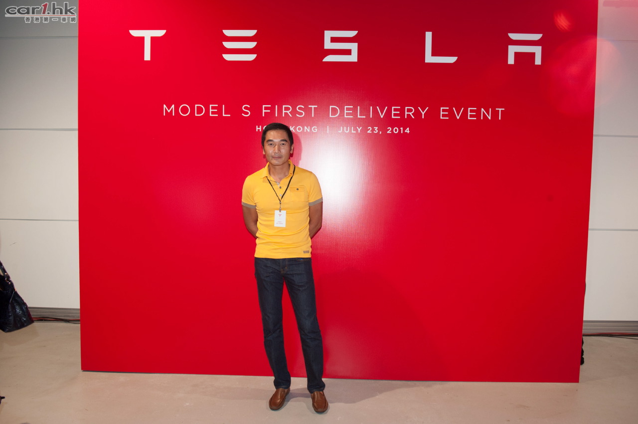 型男方中信上星期出席Tesla Model S正式交車派對並成為亞洲最先獲派Model S右軚的8位車主之一。他表示很欣賞Tesla Model S的高科技設計一見傾心,所以睇了一次車便決定買下。