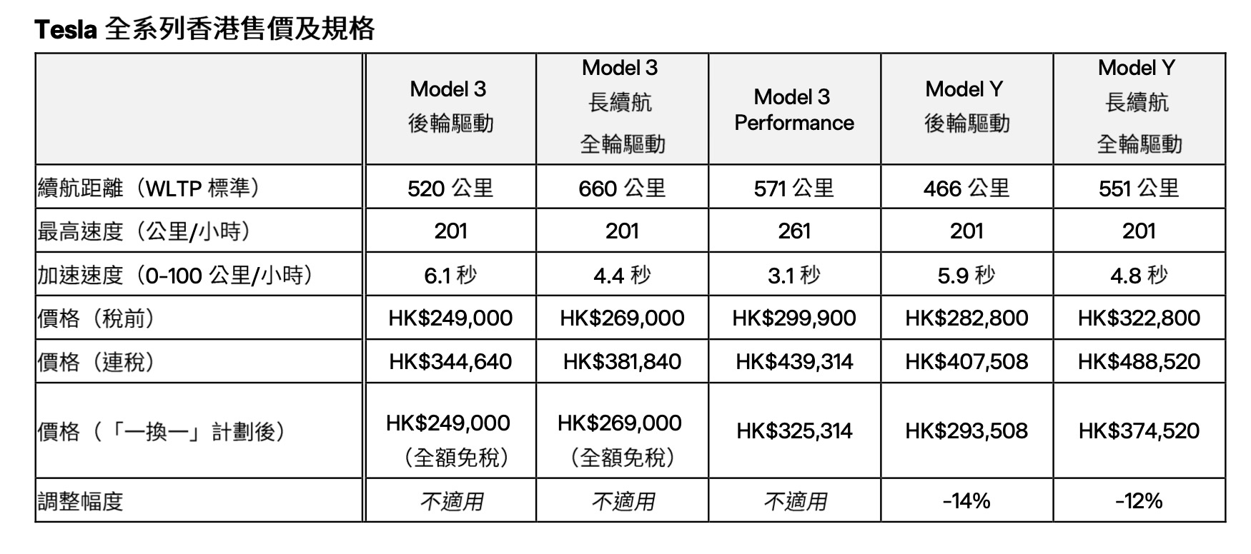 主頁新聞中心 Tesla 宣佈 Model 3 硬件升級及 Model Y 定價 03/10/2025 FacebookWhatsAppLinkedinLINETwitterEmailCopy URL打印 全新配置 Model 3 現已驚喜登陸全線體驗中心,Model 3 的硬件升級包括新增轉向訊號控制桿、前向鏡頭、啞黑色 Tesla 標誌徽章等,以及提升的續航表現。同時,為讓大眾以更具競爭力的擁有成本持有創新且潔淨的交通方案,香港於即日起調整 Model Y 價格以進一步推動其市場普及性。「一換一」計劃後,Model Y 的價格由 HK$293,508 起。 TagTeslaTesla Model 3Tesla Model Y新聞中心本地新聞汽車資訊環保車電動車 分享 FacebookWhatsAppLinkedinLINETwitterEmailCopy URL打印 前一篇文章McLaren「極限傳奇」橫跨美國:向 30 年前利曼冠軍致敬下一篇文章「漂移王」土屋圭市監修!Hyundai IONIQ 5 N 專屬 DK Edition 最新內容 外地新聞 「漂移王」土屋圭市監修!Hyundai IONIQ 5 N 專屬 DK Edition 外地新聞 McLaren「極限傳奇」橫跨美國:向 30 年前利曼冠軍致敬 外地新聞 Honda Prelude 強勢回歸!GT500 Prototype 震撼登場 外地新聞 BYD Sealion 7 Standard 震撼價入門款 外地新聞 BYD SEALION 7 國慶+週年優惠大放送!$21.8 萬入手冠軍 SUV 裝載更多