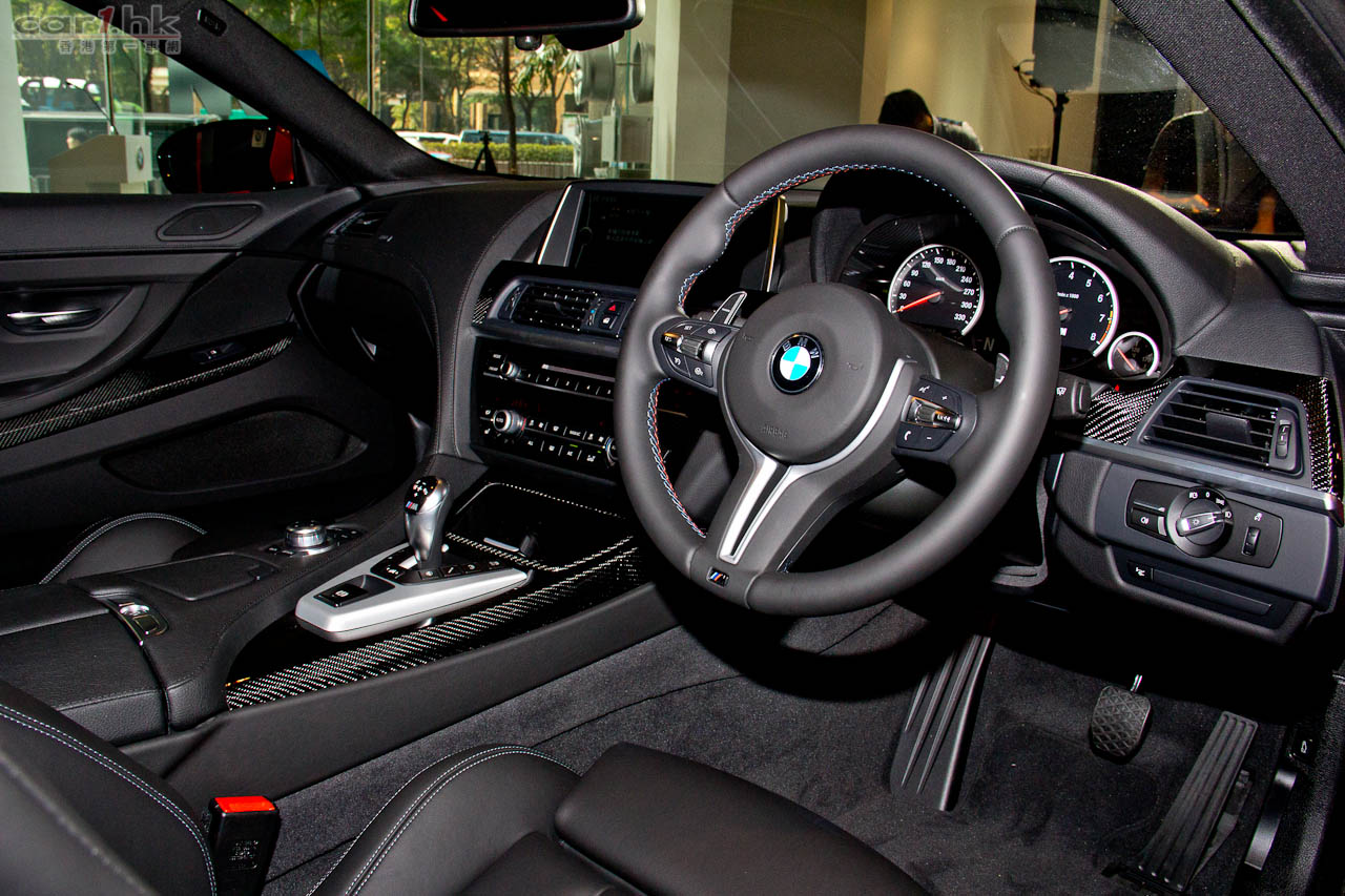 全新 BMW M6 Coupé 外型沿用 M 系列獨有的設計風格,而且前輪輪拱的闊度增加了 30mm,再加上雙腎形鬼面罩搭配主動式轉向 LED 車頭燈,令車頭增添凌厲的氣勢及表現好動個性。其他標準裝備包括免匙系統、電索門、衛星導航系統、M 系多功能座椅及 M 多功能真皮軚環連 +/- 轉檔撥片。另外,採用輕量化的碳纖維車頂,不但減輕車重,「凹」形的設計更能在行駛時利用風壓把車輛的重心降低,提升靈活性、操控性及高速行車的穩定性。