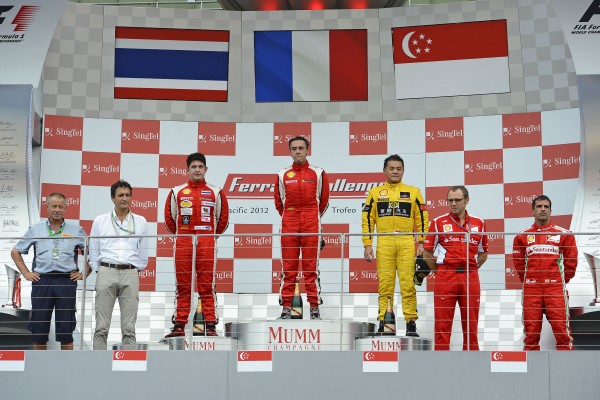 繼月初雪邦激戰後,法拉利倍耐力杯亞太挑戰賽第五場比賽上周末 9 月 23 日於新加坡完美收官。2012 年度全球總決賽將於 12 月初在西班牙瓦倫西亞再度開戰。此次新加坡分站比賽共吸引了 29 輛 458 Challenge 參與角逐。首次作為 F1 新加坡大獎賽的輔賽與法拉利 F1 車隊同地參戰則令所有的車手們興奮不已。法拉利 F1 客戶賽車部門的特別教練馬克•吉尼(Marc Gene)應邀出任本場比賽的嘉賓車手並加入眾車手在周日下午三點的決賽同場角逐,使得賽事更為競爭激烈,精彩紛呈;而他本人駕駛的 458 Challenge 車身上的 500 則具有特殊意義:紀念法拉利與殼牌合作的第 500 場比賽。