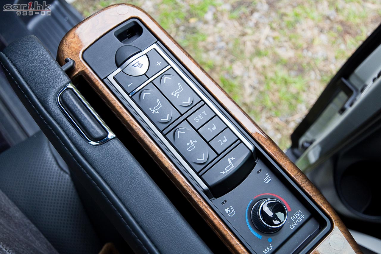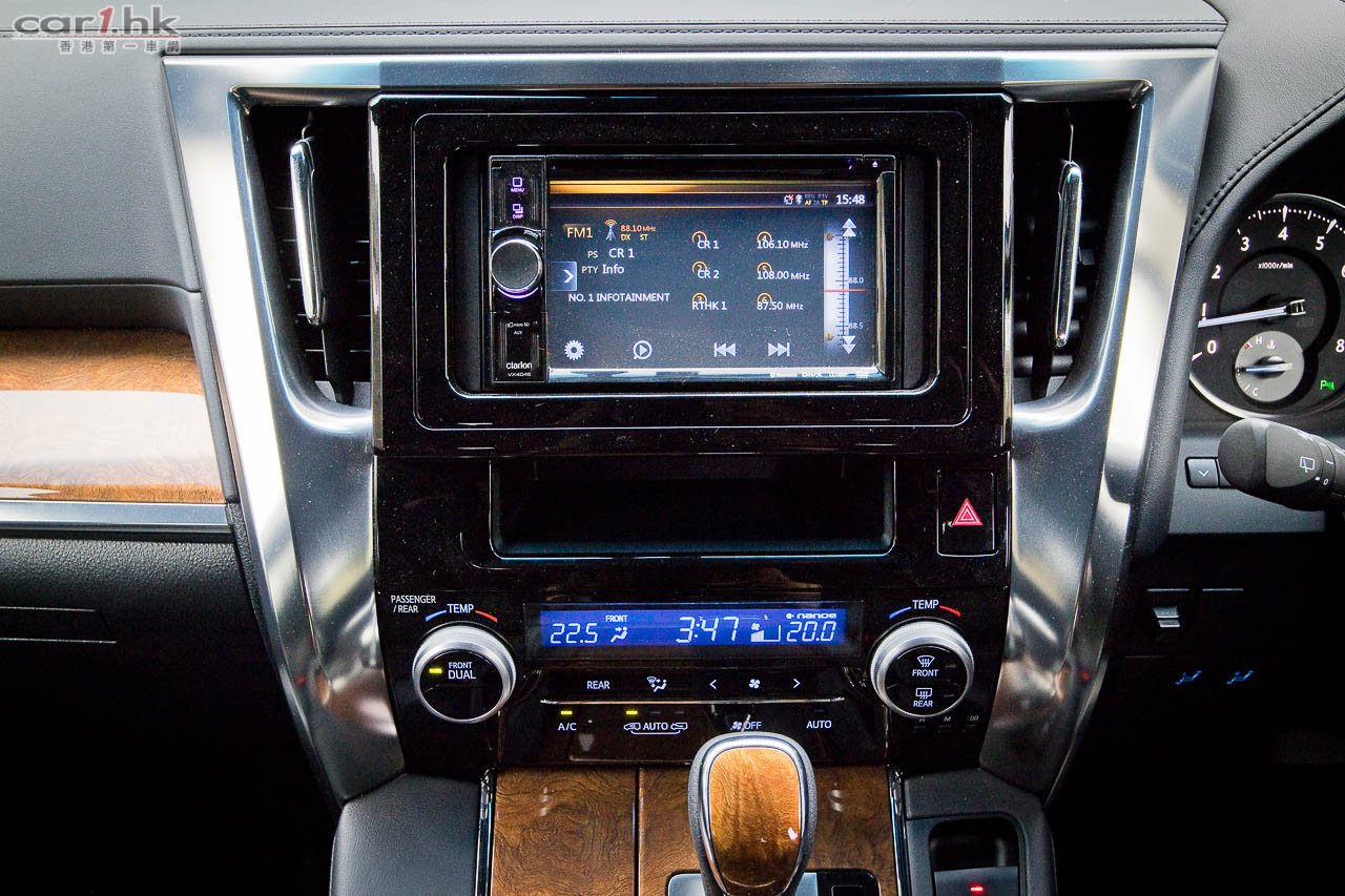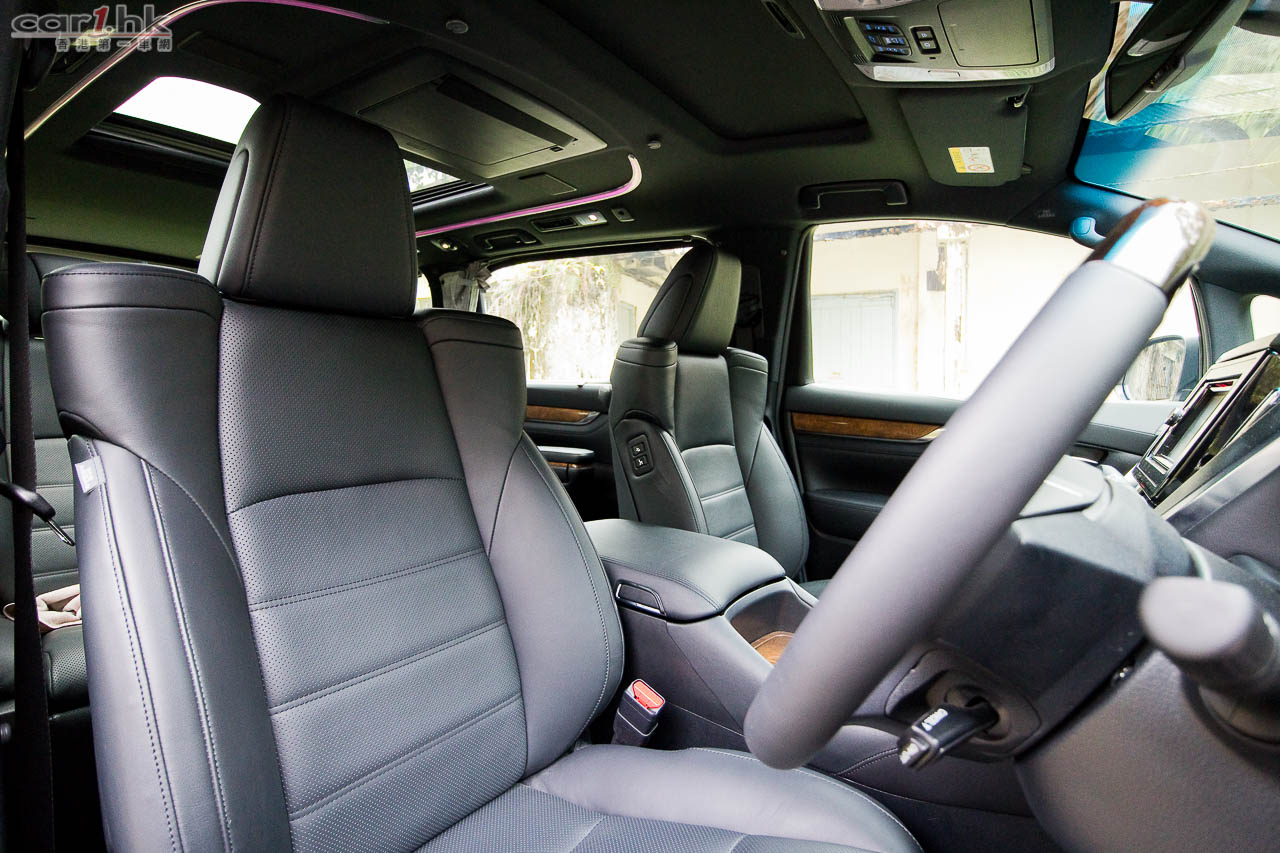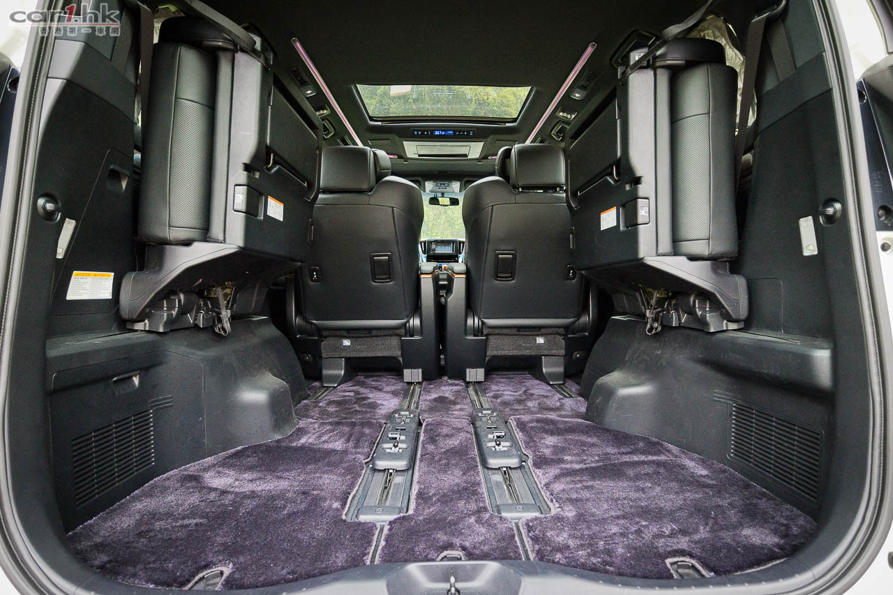 今次試駕的是頂級版 Toyota Alphard Executive Lounge,索價 $725,000,而 Alphard 350 $666,000,注重乘坐享受的話,Executive Lounge 是唯一選擇,試了一天後會發現這個差價絕對值得付出。Executive Lounge 重中之重是中排的好似飛機頭等艙的電動大班椅。兩樣座椅的功能一樣,舒適感方面可說是同級最好之一。椅背和腳墊都是電動式調校,令乘客者更易調校到適合自己的位置。冷暖座墊、獨立頭頂照明燈、隱藏式工作台,令到這部 Toyota Alphard Executive Lounge 即時化身流動工作間。車椅還有椅架、手機架,設計得非常貼心和緊貼用家潮流。車椅中的頭枕加入頭部固定墊,令長時間車上睡眠休息更得舒服。全車飾件以啡色桃木紋為主,添了不少貴氣。頭頂就是大型天窗,添加不少空間感。車廂內加入了氣氛照明燈,乘客可以在 16 隻顏色中選擇,揀岩適合自己的顏色對放鬆身心有一定幫助,亦為車廂添多份美感。近年很多豐田汽車也加入了納米離子空氣淨化功能,Alphard 也不例外,還在中排位置可以找到納米離子空氣淨化器的輸出口。