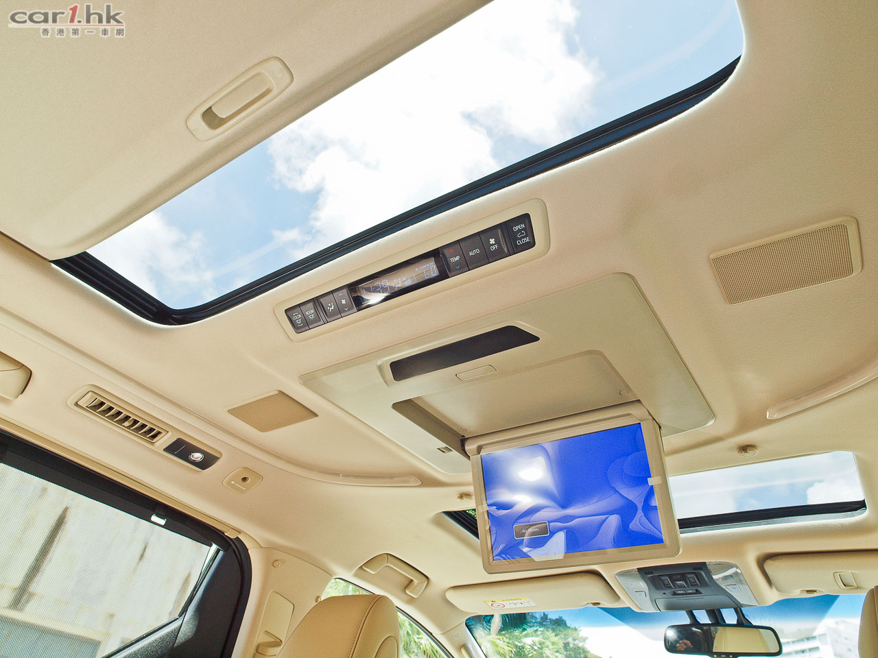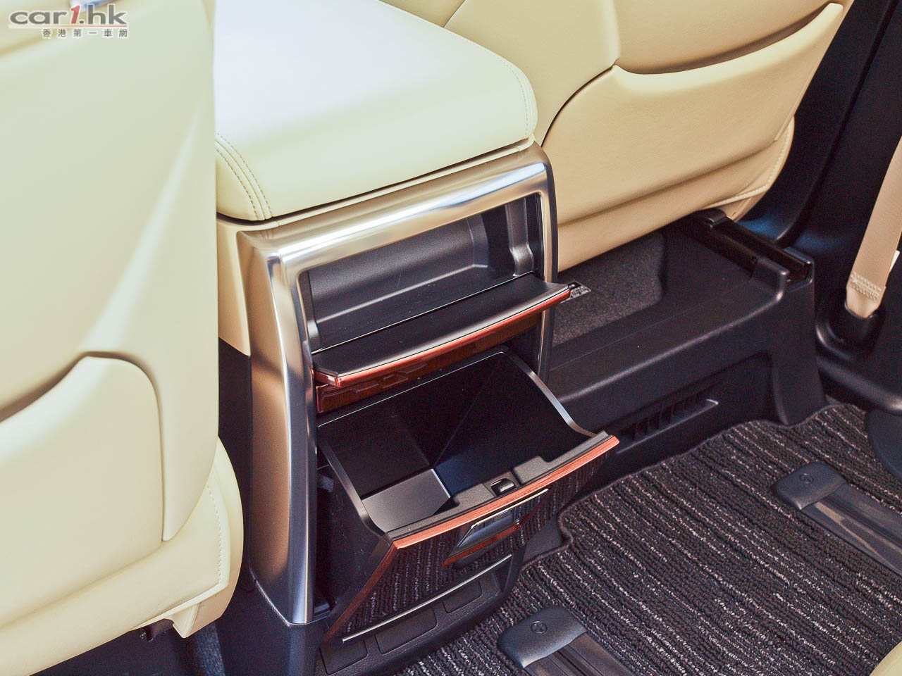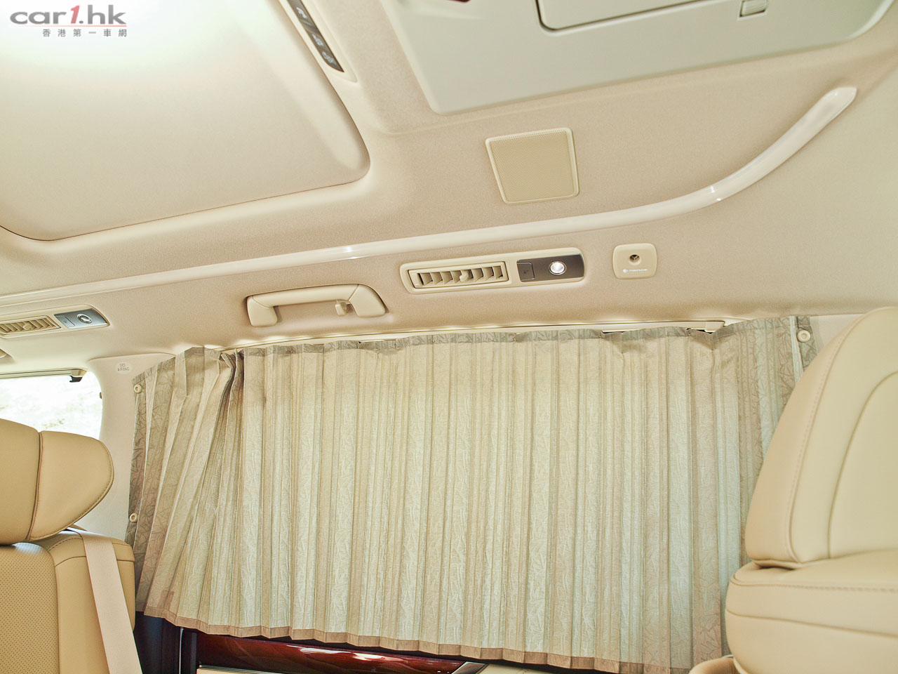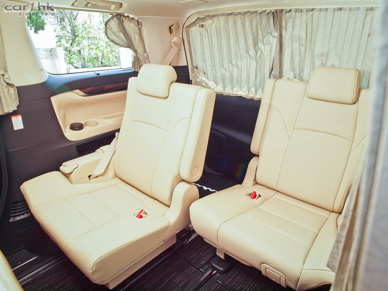 我們最先測試的Executive Lounge版本Alphard 350,中排有一對豪華得令人留連忘返的頭等式獨立座椅,有多角度電動調校和電動小腿墊、semi-aniline皮革、特厚頭枕、冷暖氣和多功能控制panel、暗格/抽屜/杯架/工作枱等,Alphard hybrid的一對則採用Flaxen leather皮革,同有電動調校椅背和小腿墊,功能較少,但當然依然豪華。