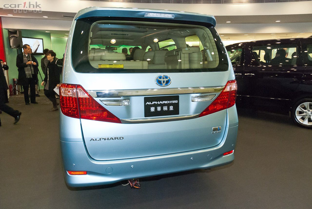 此次發布會的焦點落於 Alphard Hybrid,車身尺碼長 4,870mm、闊 1,830mm 和高 1,905mm,搭載的 2.4 公升直四 VVT-I 引擎,可輸出最大馬力 150 匹/6,000 轉及最大扭力 190 匹/4,000 轉。配備前、後電動馬達,前馬達可輸出最大馬力 143 匹及最大扭力 270 牛頓米,後馬達可輸出最大馬力 68 匹及最大扭力 130 牛頓米,綜合可輸出最大馬力 190 匹。由於 Alphard Hybrid 為電子四輪驅動,會因應不同的行車情況自動選用四輪或兩輪驅動,從而進一步提升慳油表現,於日本測試中更做出 19km/L 的出色成績。停車或慢速時會自動關掉引擎,減底廢氣排放並造就寧靜空間。Alphard Hybrid 透過先進技術即使關掉引擎後仍能維持冷氣供應。