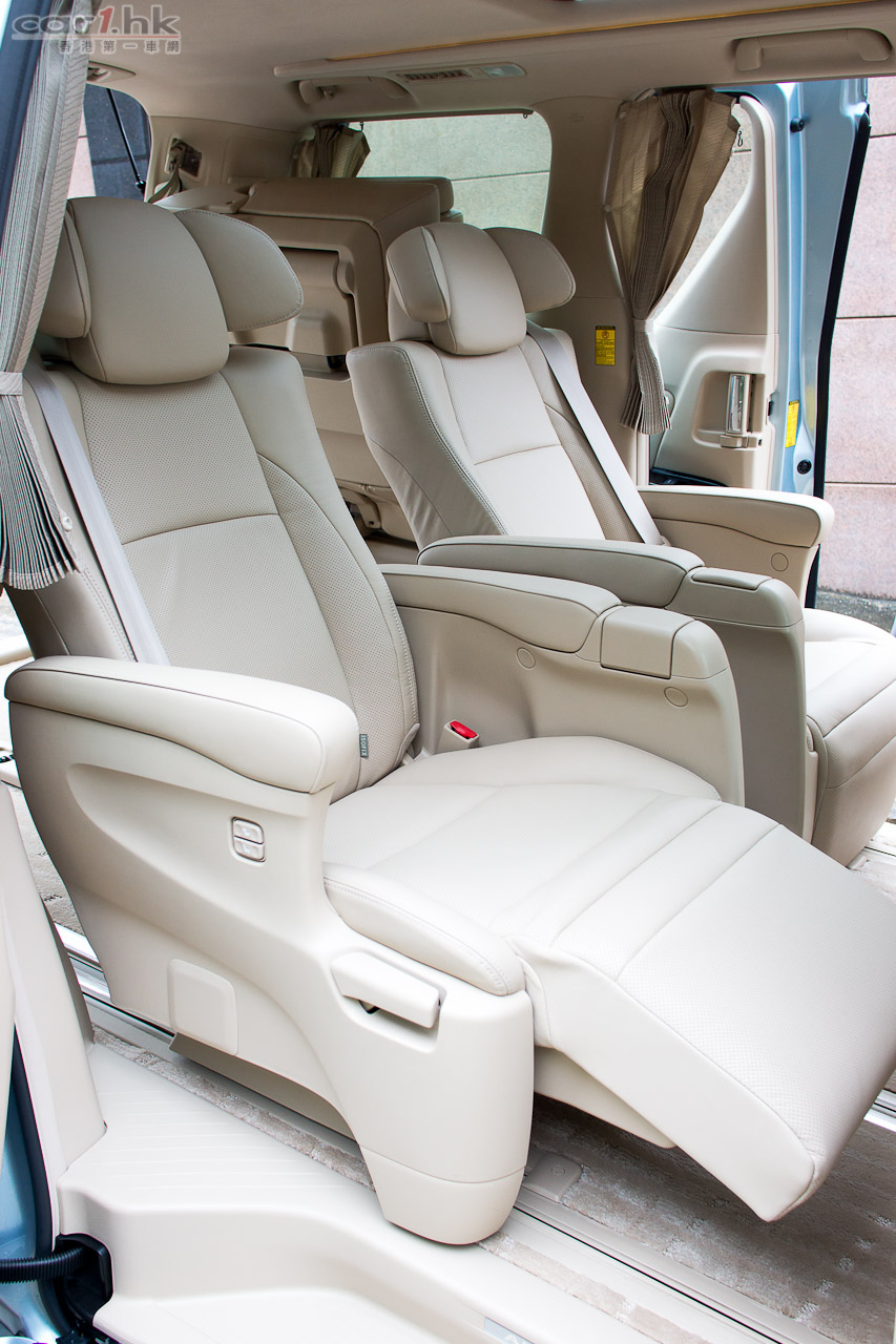 小改款的 Alphard 外型未有大轉變,只是換上新設計電鍍鬼面罩及一體化擾流式頭泵把連霧燈,看起來動感一點和一體化。與過去 Alphard 一樣,Alphard Hybrid 仍是 2+2+3 的座位排列,這個排列方式就是中排座位舒適,同時亦可預留中央位置作通道之用。中排兩張大班椅很舒服,是電動調校角度的 Ottoman 大班椅,頭枕位同時設有防跌護枕功能,坐長途車也不拍頭部左遙右擺。另外,杯座、腳踏、小茶几通通有齊,絕對比美頭等機艙。這兩張椅子可作出 78 度的傾斜,想全心全意在車廂中休息不成問題。抬頭看便是影音系統的 10 吋 LCD 顯示屏,配合車內八個揚聲器,視聽享受仍保持過往水準。在駕駛方面,後泊車鏡頭、7 吋輕觸音響連 SG+導航系統,都同時俱備。