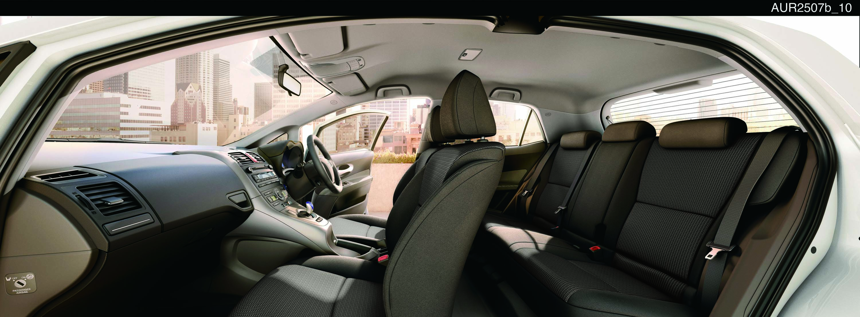 五座位的四門掀背車 Auris Hybrid 外型年輕,時尚的車頭設計和 hatchback 車身流暢線條,令車子充滿活力與動感。車身尺碼為 4,245(L) x 1,760(W) x 1,510(H)mm,比起七座的 Prius V 也只是窄 15mm 與矮 65mm,所以試坐時空間感十分寬闊,後排頭部與腿部空間亦都相當充足,再加上首次採用 Alcantara 優質皮座椅,配合大面板輕觸式螢幕音響系統連 6 喇叭,為乘客帶來舒適的乘車享受。其他設備還包括智能車匙及按鈕啓動系統、自動恆溫冷氣系統附設花粉過濾器和 LED 日間行車燈等等。